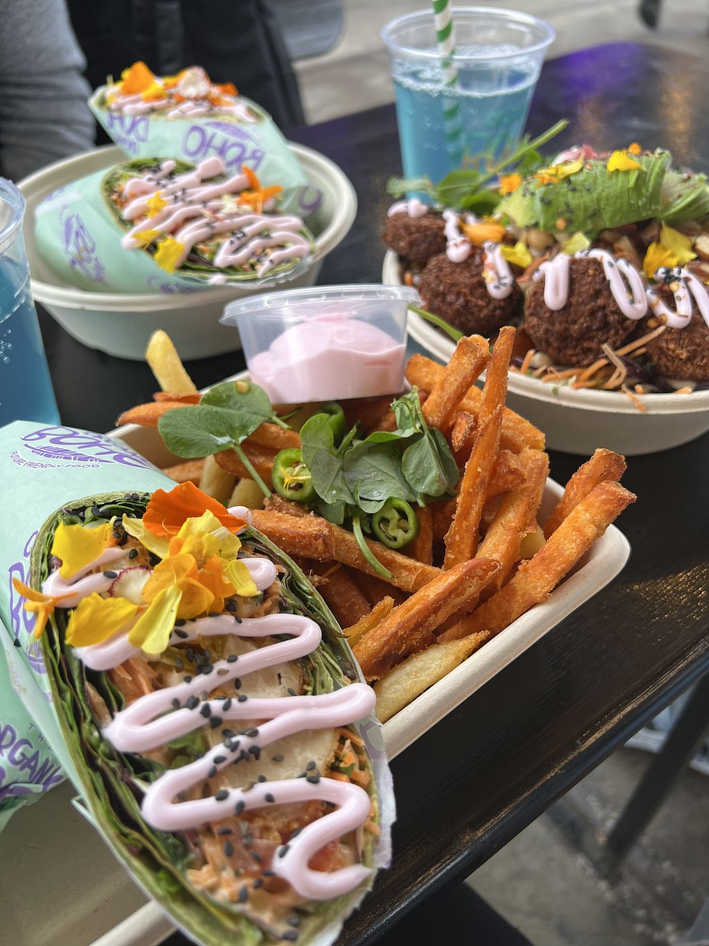 The food is beautiful BUT I ordered the wrap and there was barely any nuggets inside. My boyfriend ordered the wrap with tempeh and there was also not enough tempeh. The wrap could also be better if there was some avocado in it and more of the meat substitute options (nuggets, falafel and tempeh).