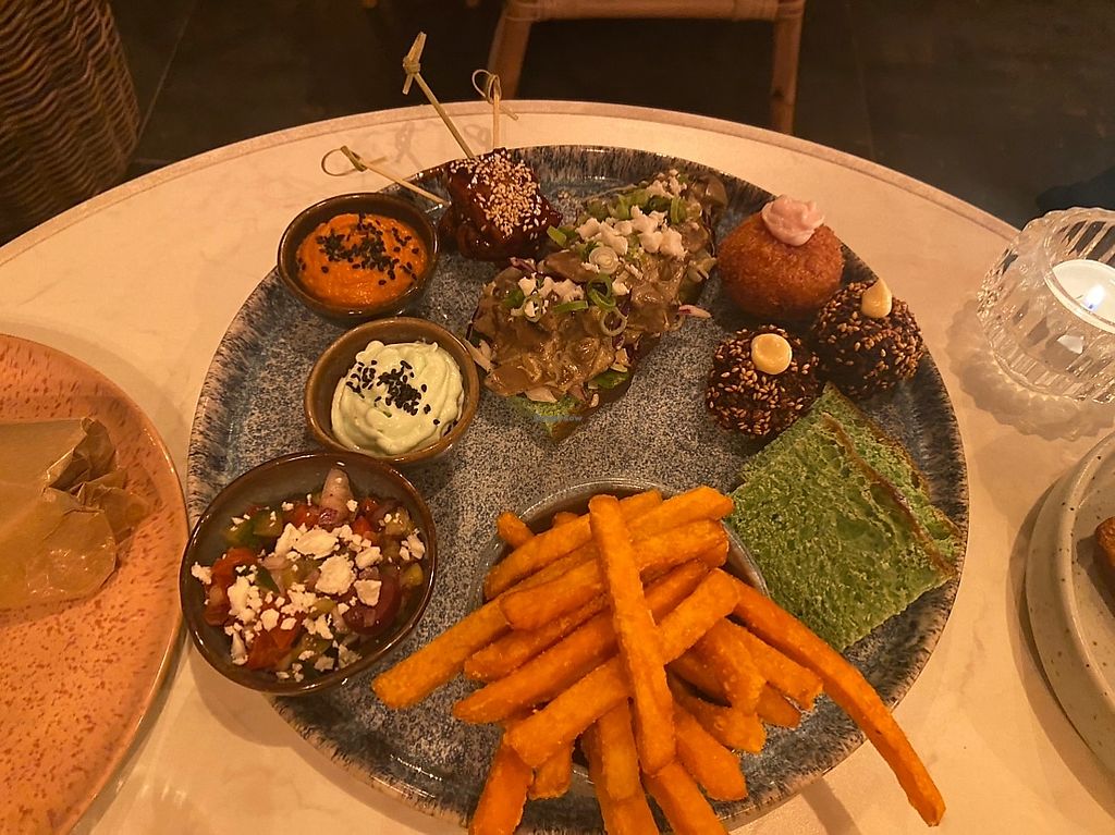 thought the food was great! i had the fries w/ chipotle mayo and tempeh salad. fries were perfect especially with the mayo!!!and the salad was just🤌🤌 super filling and lots of good ingredients;) def expensive (@ least for me maybe not that expensive for cph…💔). 💝💝