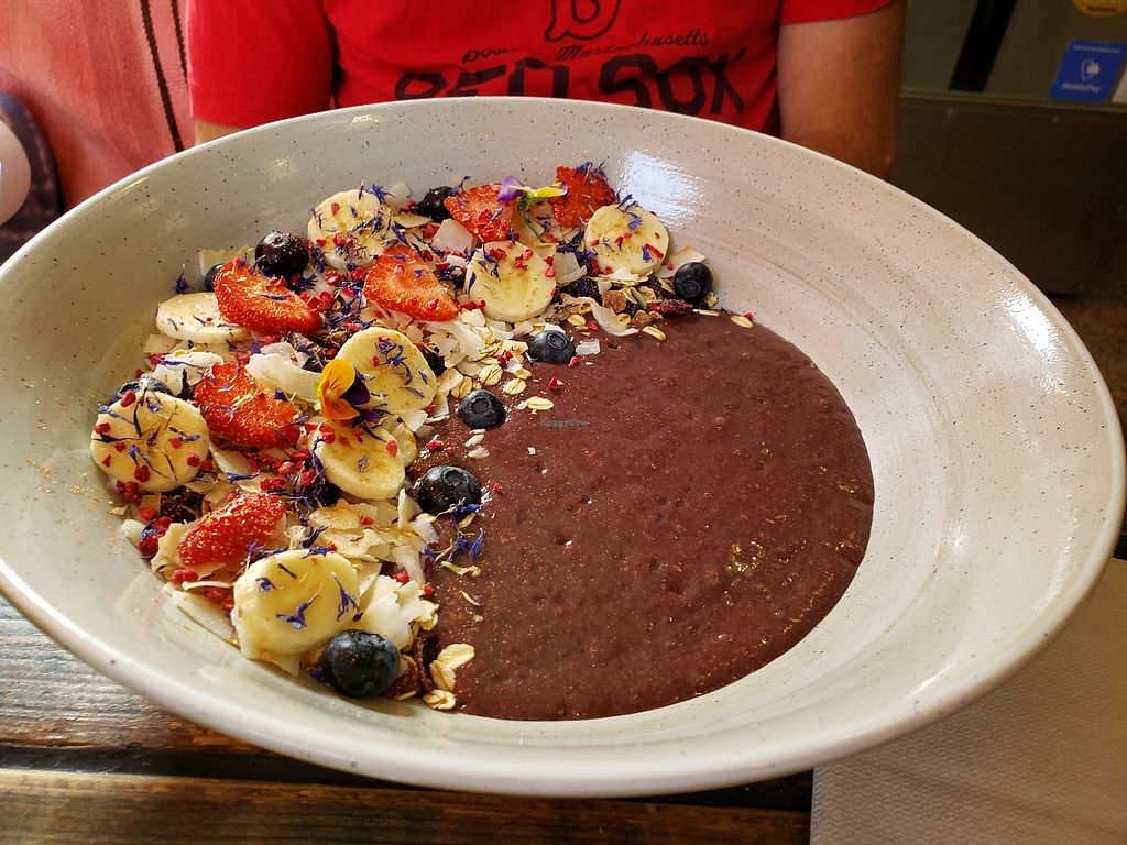 Awesome acai bowl lots of fresh fruit and nuts