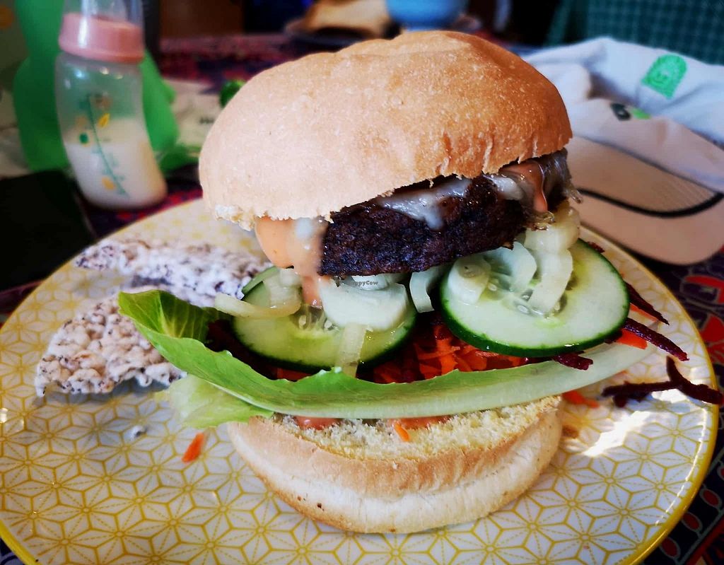 The vegan sausage roll was good and so was the tempeh burger which was packed with fresh salady bits. The Brunch Burrito was ok.