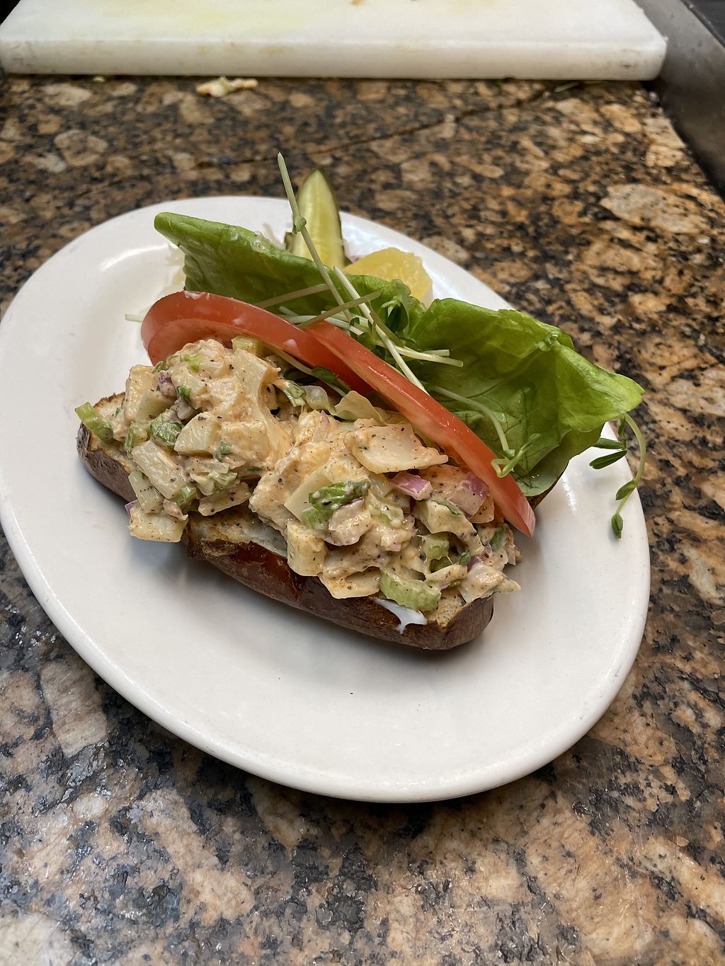 OG Lobster (heart of palms) Roll. Served on a pretzel bun