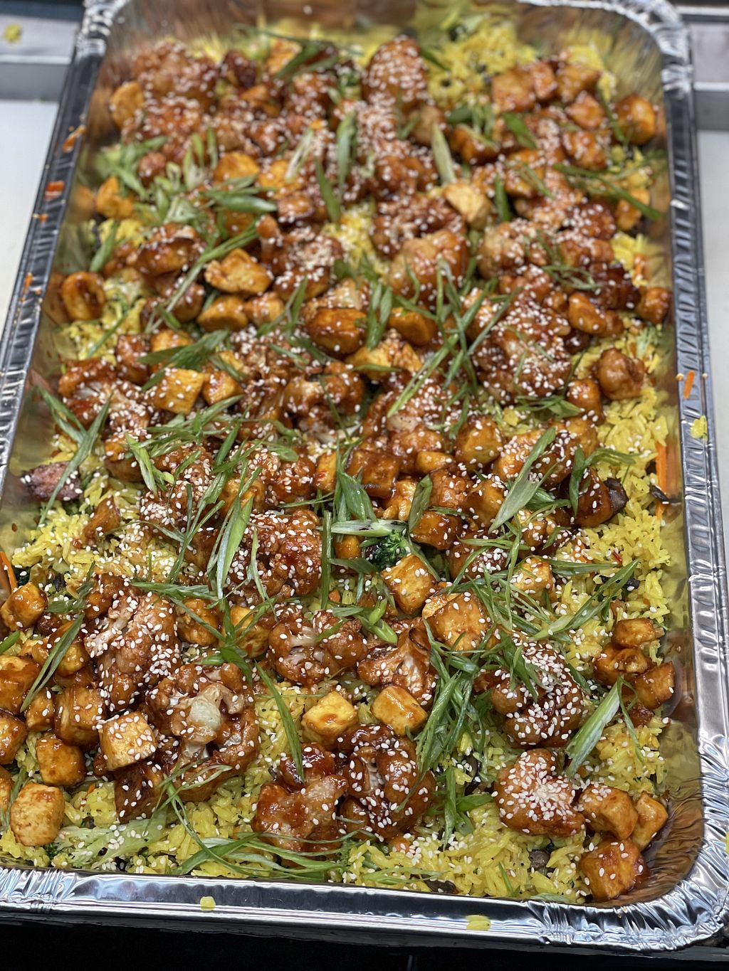 Tray of Kung Pao Jasmine Rice. Place an order for your family event or…