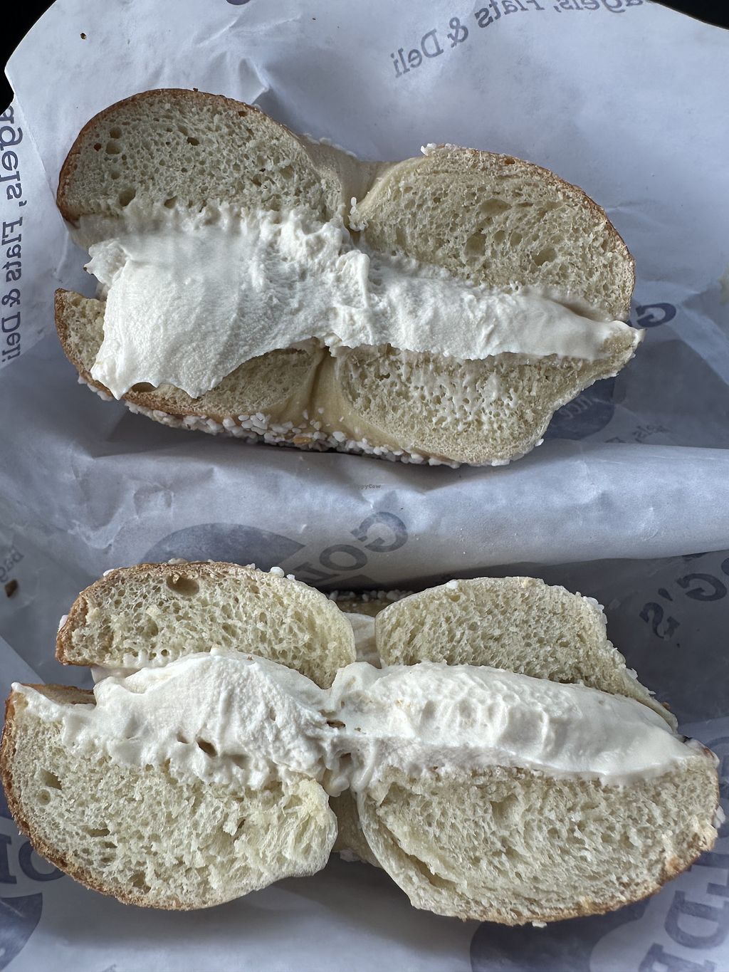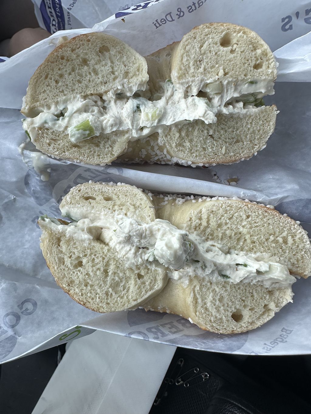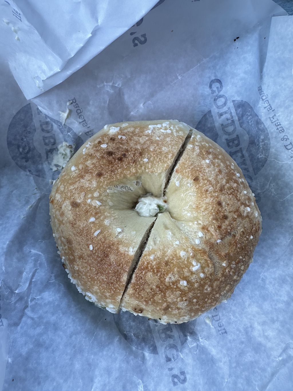 Good bagels. Got a toasted salt bagel with tofu scallion cream cheese. Lots of onion on the bagel which I loved, but the bagel had an overwhelming amount of salt on the underside.