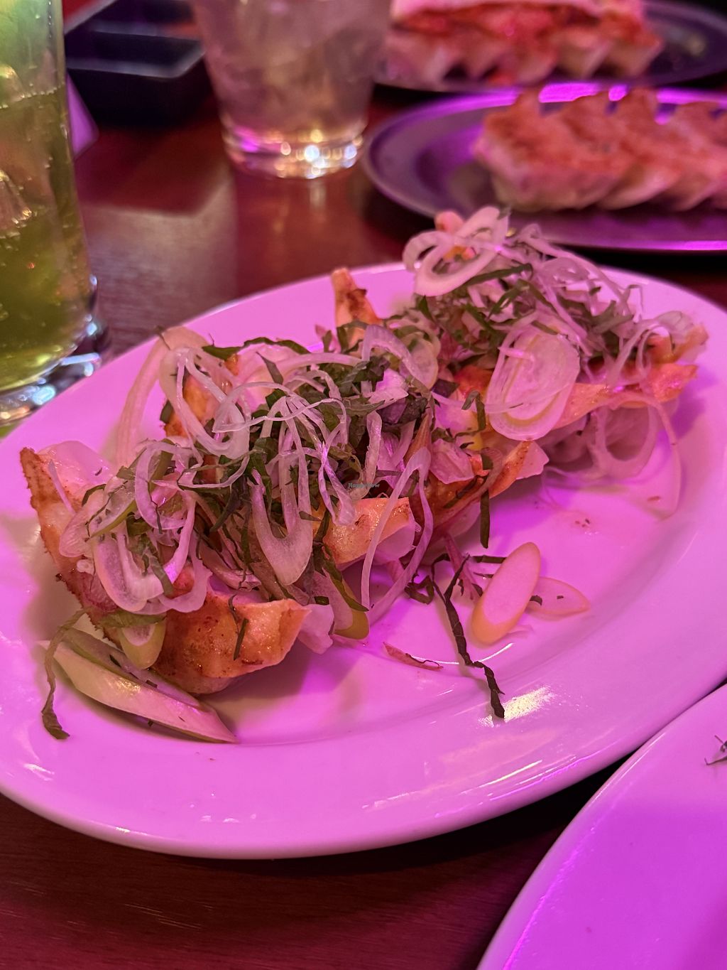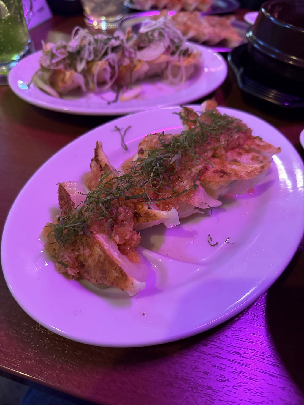 Vegan goyoza, mapo tofu with soy meat and edemame