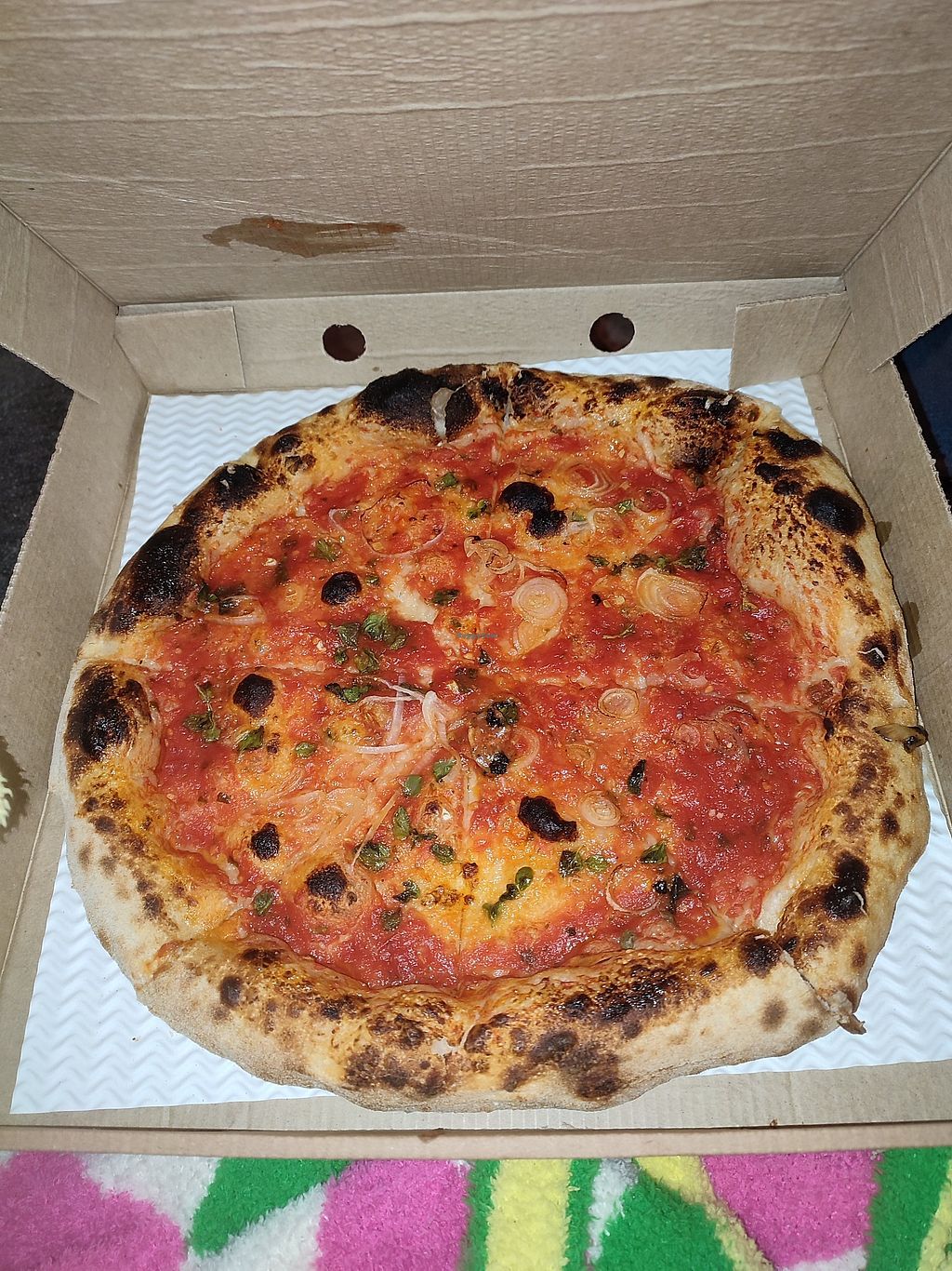 Extremely good pizza, we have it very often. Is Neapolitan style. I like the marinara (which is very reasonably priced - £8), but they also offer option to swap for vegan cheese for £3 (so Margherita would be £13 as you can't add to marinara but instead have to sub the margherita). (I have not tried this cheese). They also offer a 'Caprese' pizza for £14.50 using Julienne Bruno Superstraccia which is an amazing vegan cold fresh cheese. Highly recommend. They offer vegan truffle mayo & vegan pesto dip (I've not tried). There tend to be lots of vegan ice cream flavours, which change often. All that I have had have been delicious. Everything is well labelled. Not had coffee here but looks like they charge 75p surcharge for non-dairy milk. Overall place on the pricey end. Owned by same people who own the Tuning Fork.
