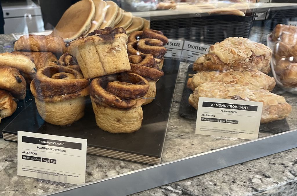 Almond croissant, sticky toffee biscoff cake, oat cappuccino & oat lat…