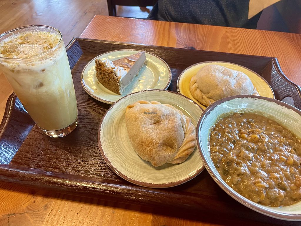 Zucchini corn soup, hand pies, chocolate peanut butter pie, and a latt…