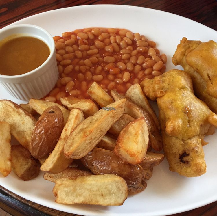 Really tasty vegan pub food. Good price and portion size as well. Also a really lovely pub too.
