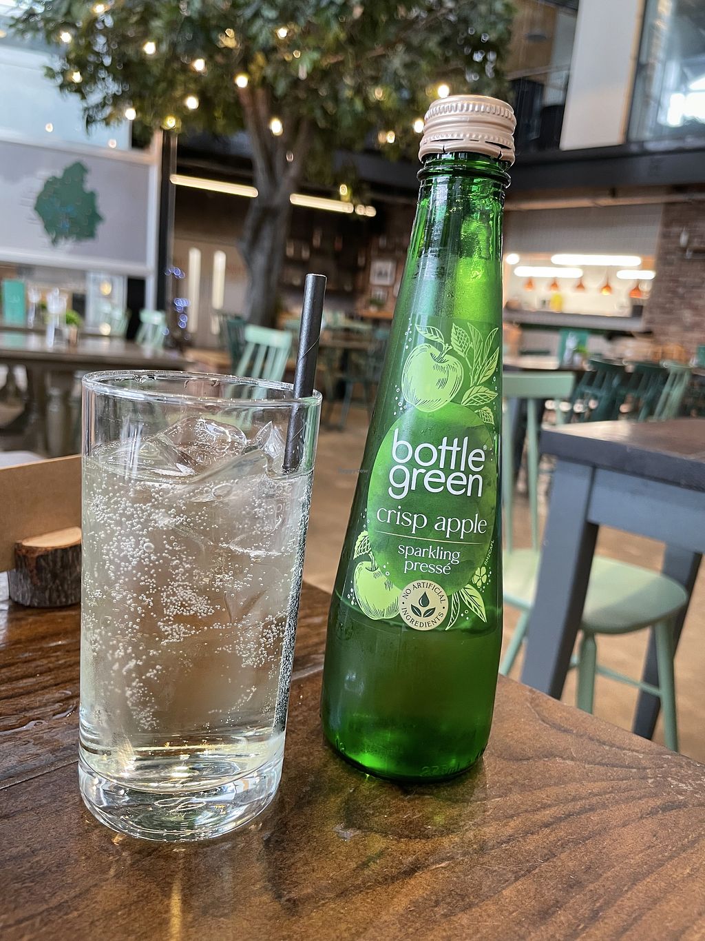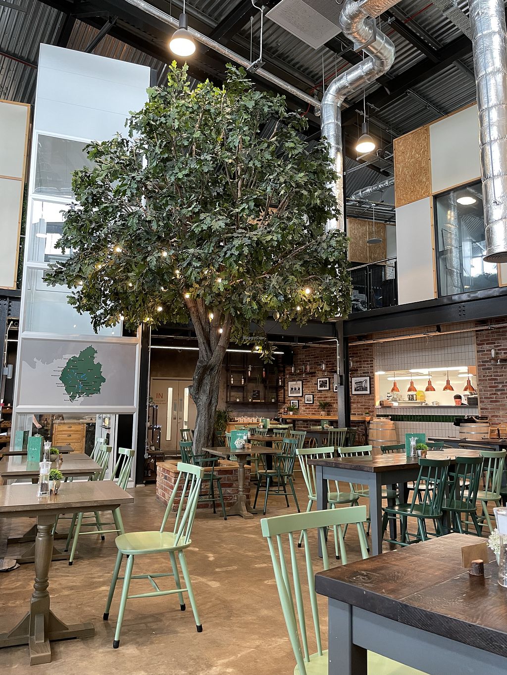 nice atmosphere in the industrial style building yet warm features like the tree in the centre, traditional british menu with a twist, selection of vegan options, reccomend the flatbread! Well thought out dishes - nice to have multiple elements to a vegan meal rather than an after thought.