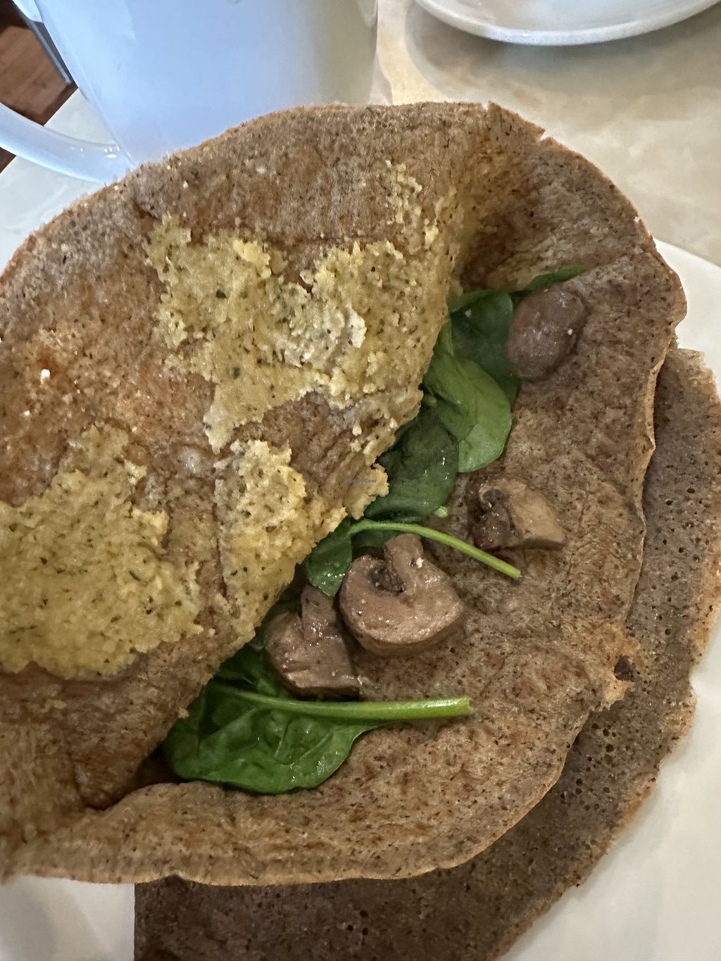 It’s a nice place to get coffee. There are vegan options for breakfast/brunch. We had savory crêpes. We were not too excited about them… they were a bit too dry and bland.