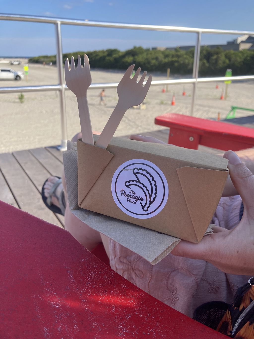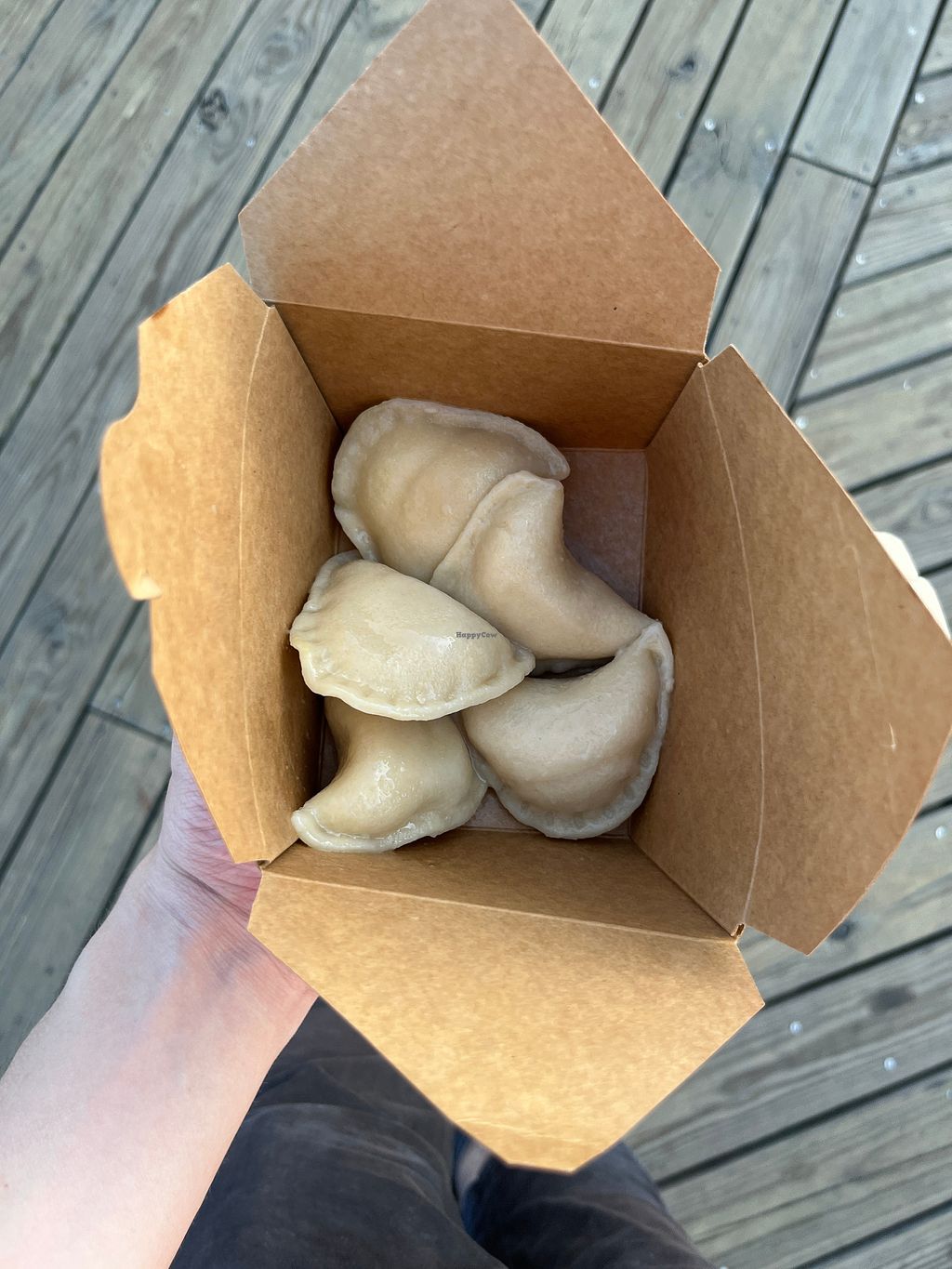 Delicious vegan cheddar and potato pierogies (although sometimes they run out, and they take 10-15 minutes to make). Only bummer was that none of the toppings were vegan (except for applesauce), and sometimes (not always) they put a lot of oil on the pierogies, but they always have a great flavor and texture. And so lovely to have a vegan option on the boardwalk! The flavors other than vegan cheddar (which also had potato in it) all have butter or other forms of dairy. We've ordered from both locations on the boardwalk for years and they're both consistently great. One of the best vegan options on the boards for sure. As another reviewer said they're expensive for the price, but most vegan food is on the boardwalk.