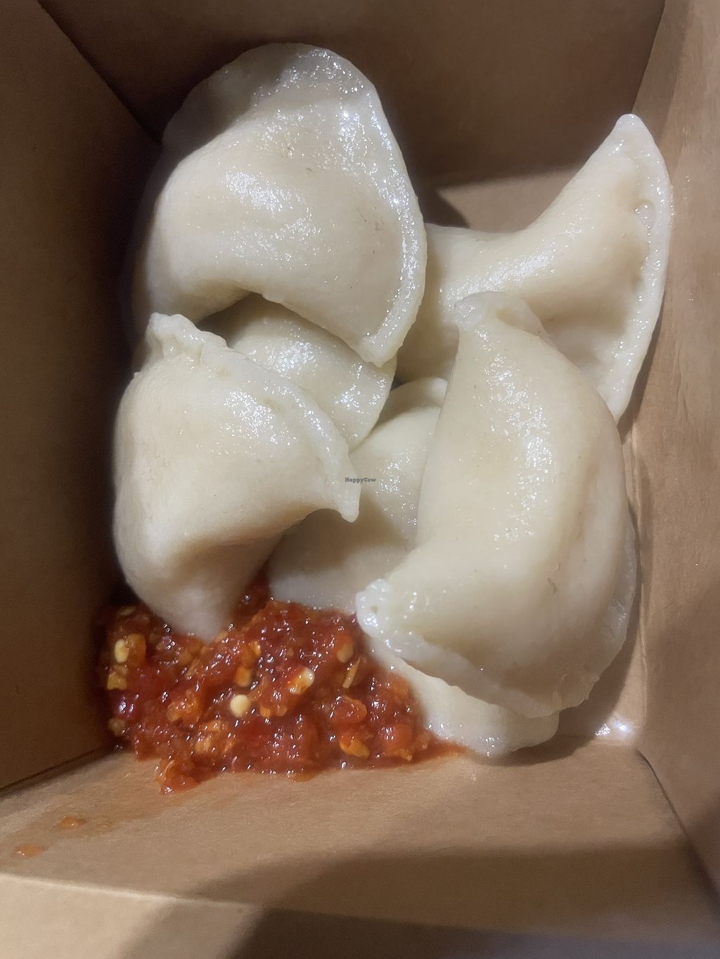 Just the one vegan flavor and it takes like ten minuets to make but is pretty good. Toppings available as vegan they said were apple sauce and the spicy garlic sauce. We got apple sauce. My partner loves pierogies and a verbal “wow” came out after she took her first bite. Seal of approval.