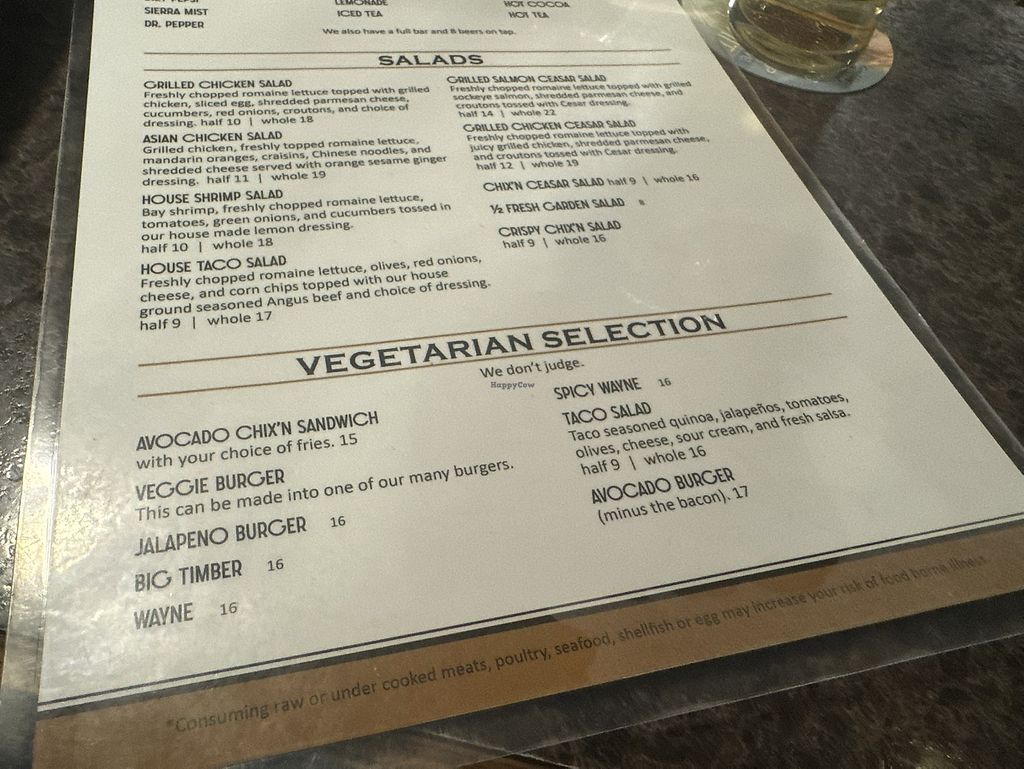 Serves meat, vegan options available. Country diner and bar with vegan "chicken" sandwiches, salads, and veggie burgers. NOTE: Reported March 2024 to have limited vegan options – please send updates to HappyCow. Open Mon-Sun 11:00am-10:00pm. Closed Sun.