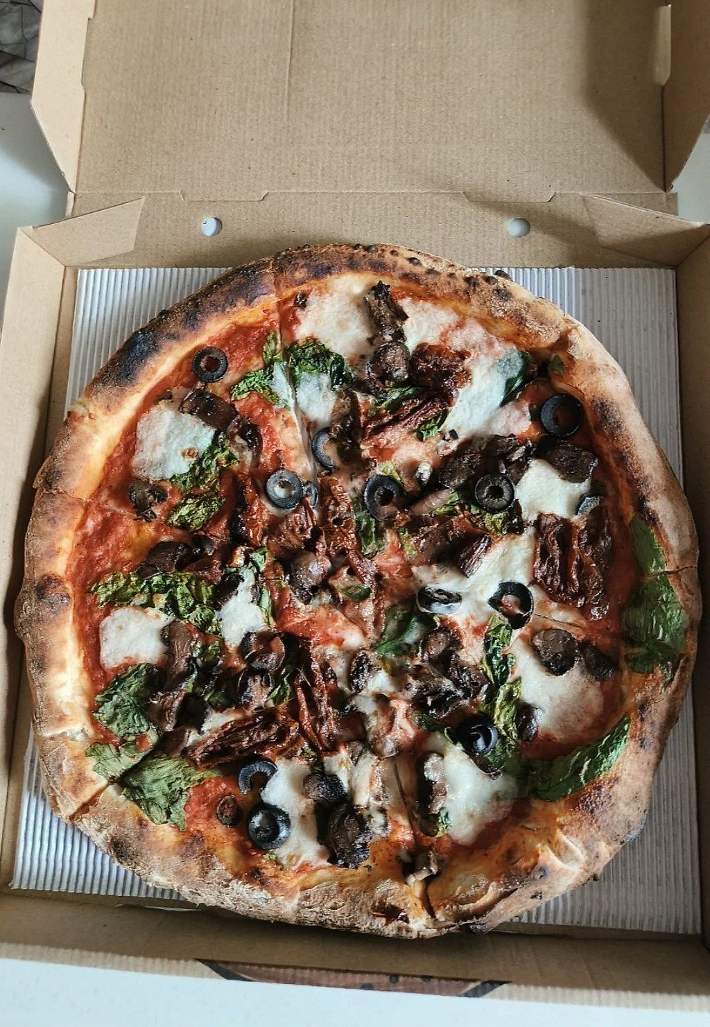 Had the vegan quattro stagioni which was loaded with fresh veggies and a gorgeous and super creamy coconut-based vegan cheese. The vegan garlic bread with mushrooms and truffle was just ok. My friend said that the vegetarian pizza and garlic bread was bomb.