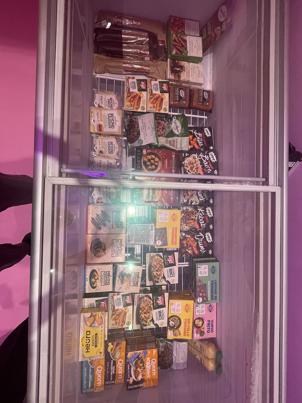 New market place offering vegan cheese, embotits, teas, sauces, and many freezers with pizzas, heura, icecream and other vegan products.