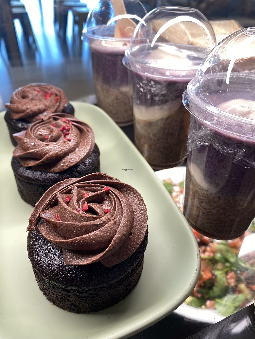 Vegan chocolate mud cake & apple & blackcurrant crumble chia pudding wβ¦