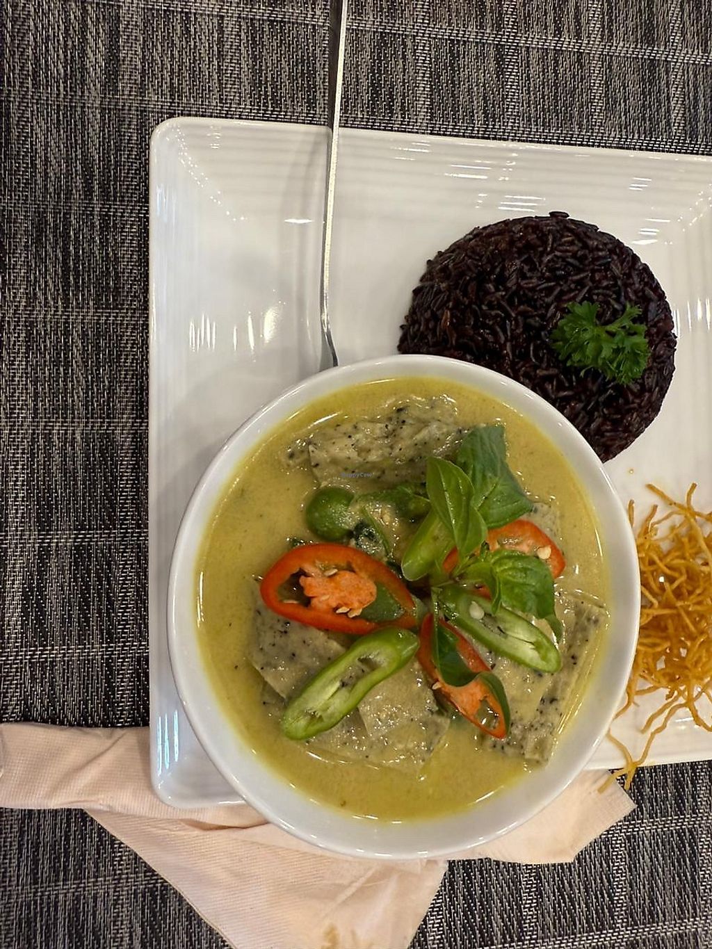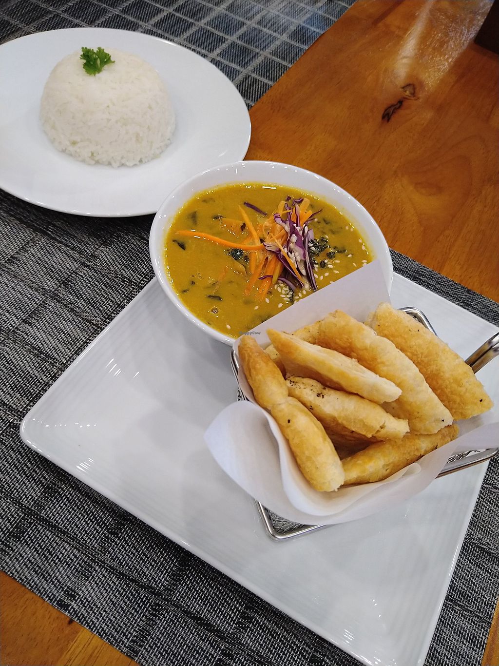 Chickpea curry+plain rice, ordered also with PLAIN roti but on receipt…