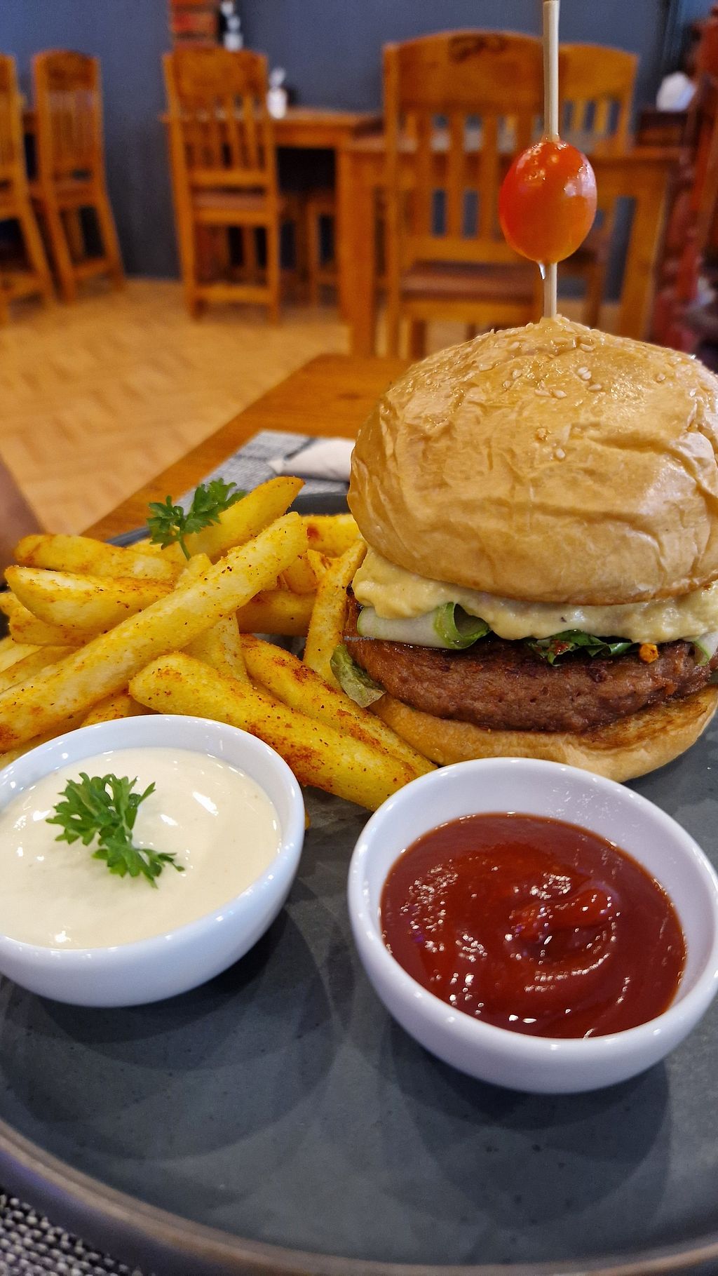 Spicy tofu burger