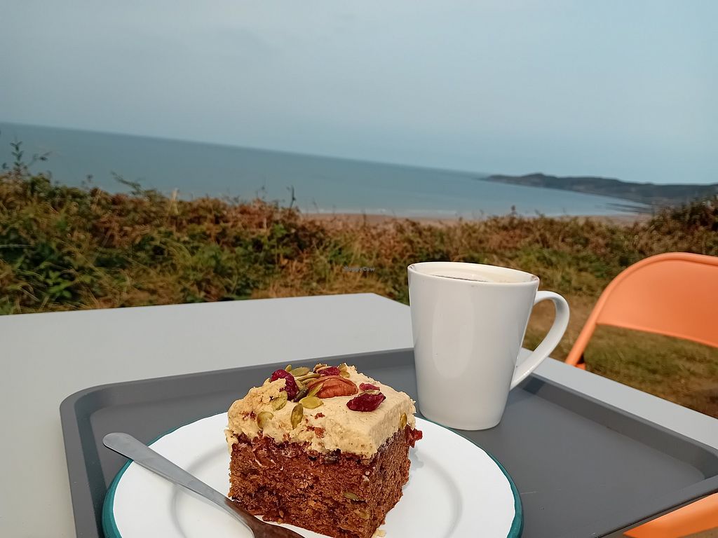 My dog and I walked along the path through the dunes here and along the beach back to Woolacombe. A great walk with a great cafe in the middle. A vegan salad box and a nice big sandwich, 2 vegan cakes and all the hot drinks. Nice vibe. Beautiful view.
