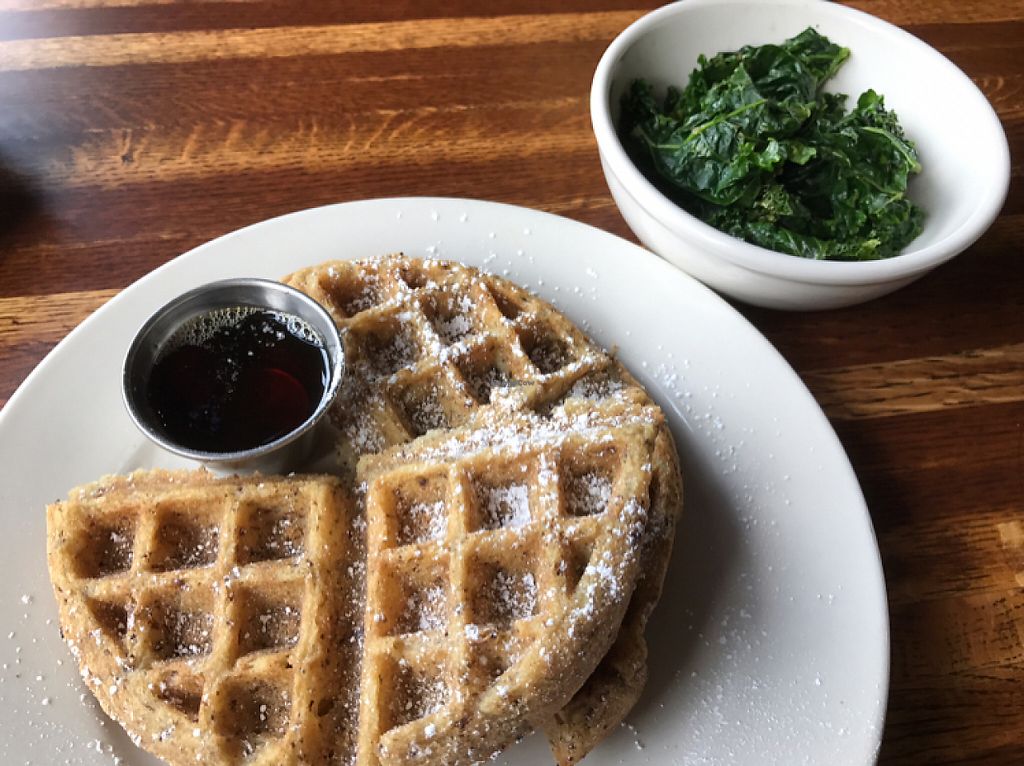 Cool industrial vibe in a charming bungalow neighborhood. Very extensive coffee bar with soy, almond, coconut milk options. Many vegan baked goods (scones, muffins, cookies) and I believe all were gluten free. But they didn't taste gluten free. Consistency was perfect. Pressed juices. Coconut milk yogurt. Hot entrees too such as vegan waffles and quinoa breakfast bowls. Housemade granola looked amazing. Want to give 5 stars but for some reason can only highlight 4 stars. Will try to edit later.