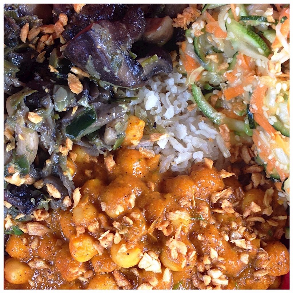 Chana Masala, mushrooms, zucchini, sesame seeds on brown rice!