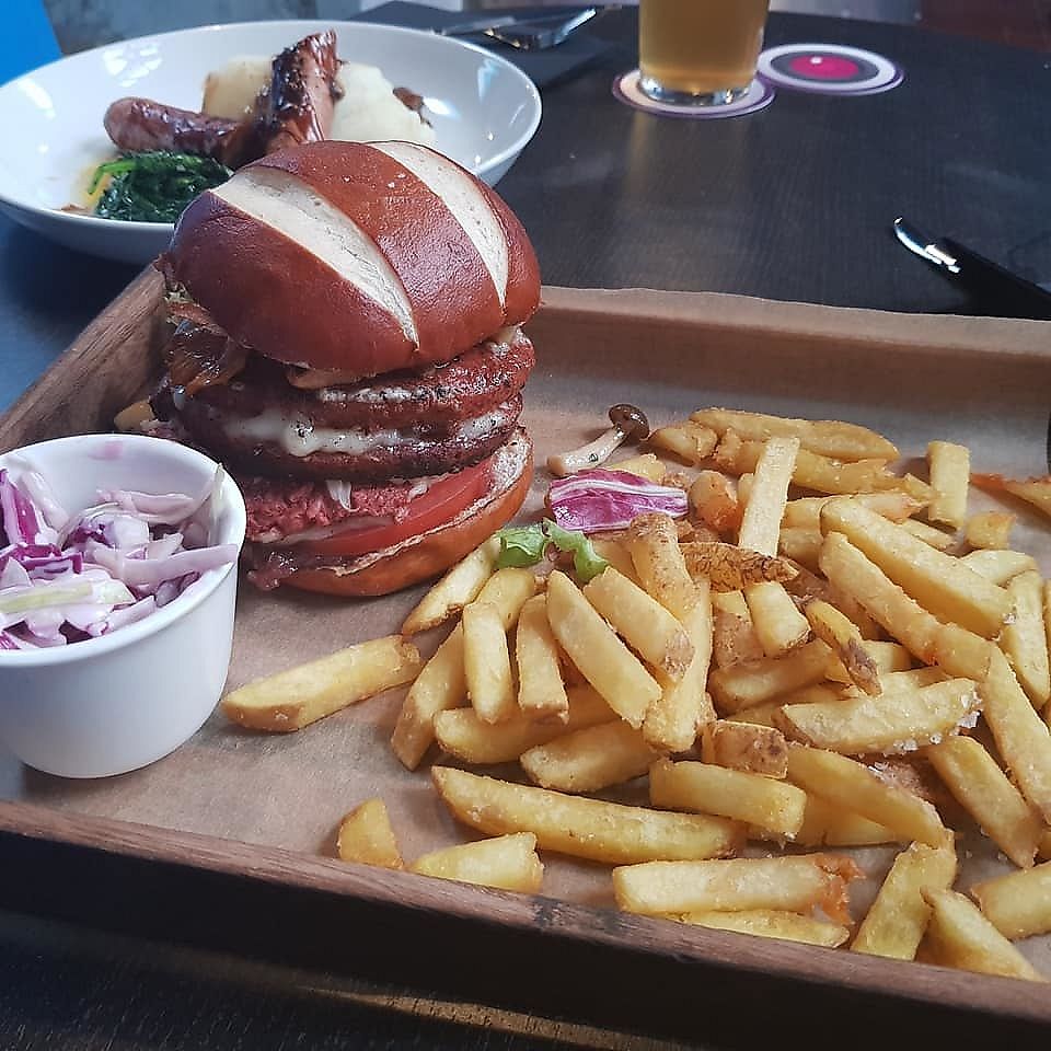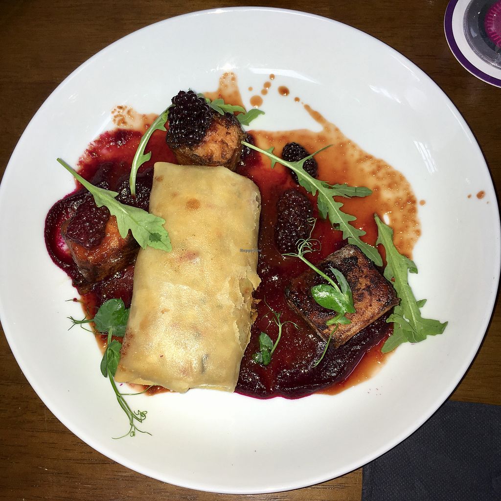 Crispy duque parcels with sweet potato, beetroot purée & berries 😋