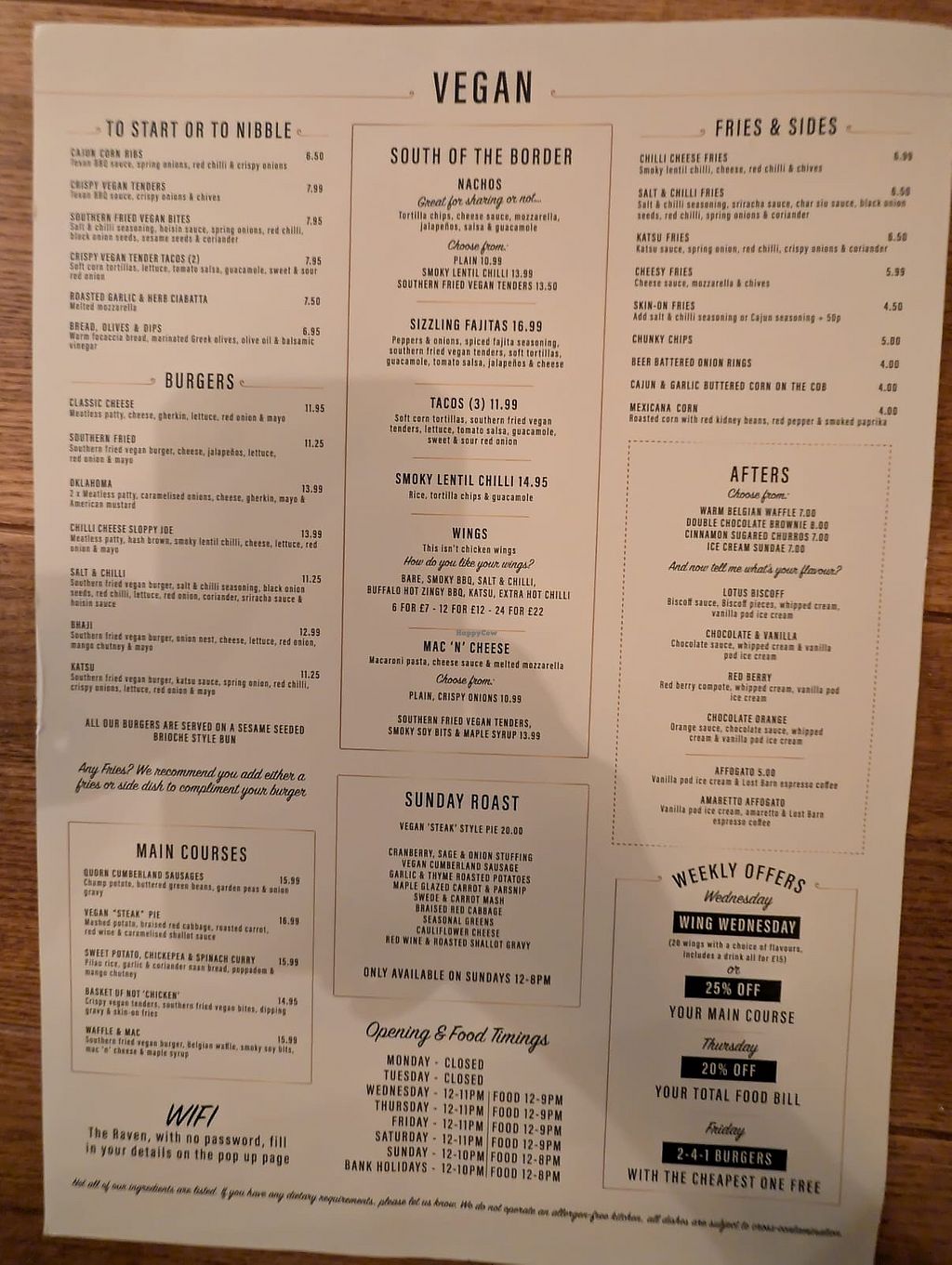 Full vegan menu with tons of choices. The staff and atmosphere were really nice. The food was standard pub-quality food, nothing really special but so nice to have a big vegan menu with lots of choices. Everything was good, fresh and tasty.