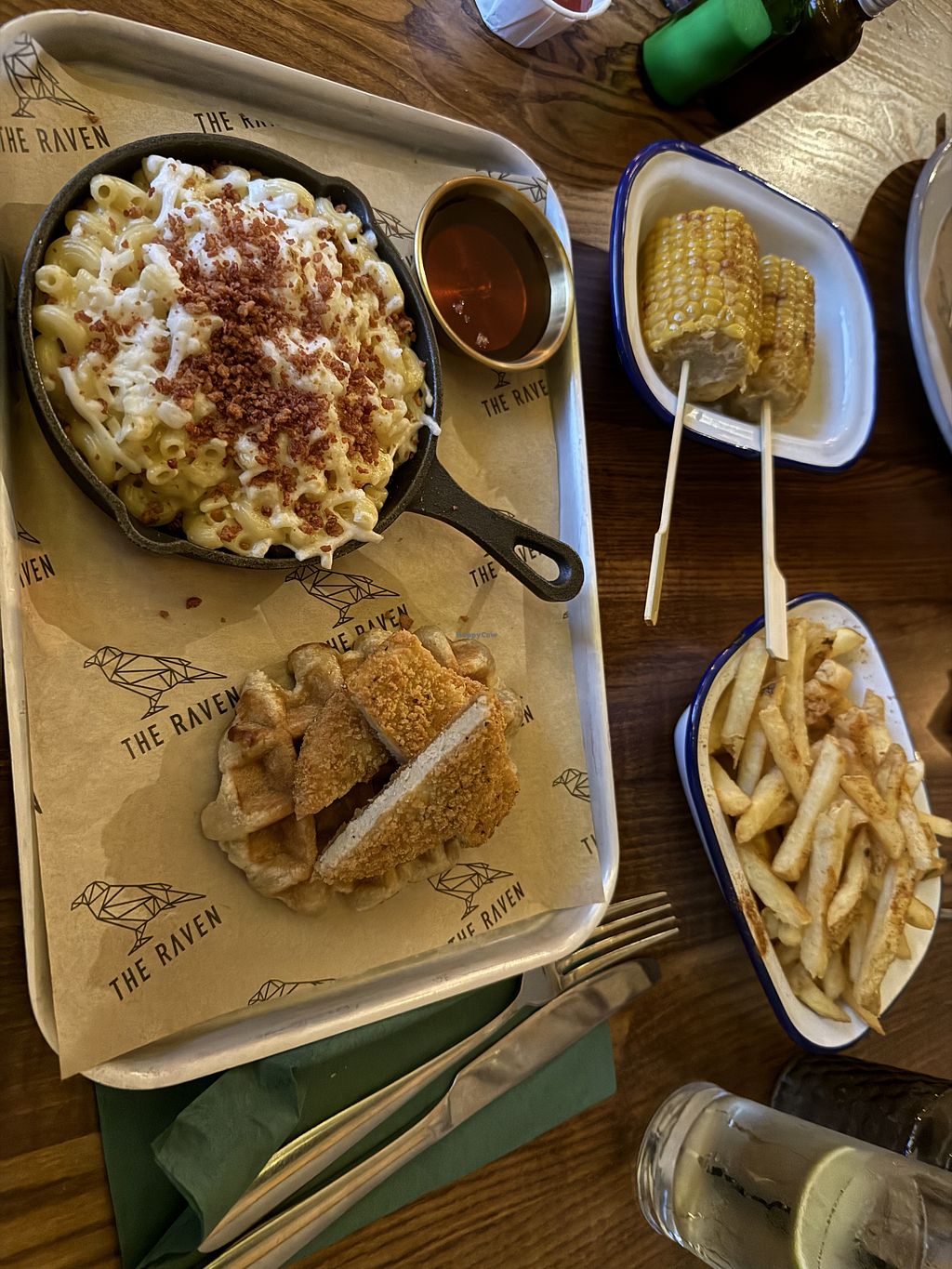 Really good vegan options via a separate vegan menu. Also hot drinks have the choice of oat milk. I had the waffle and mac with corn on cob and Cajun chips all tasty and filling. Staff friendly and attentive. Defo worth a visit