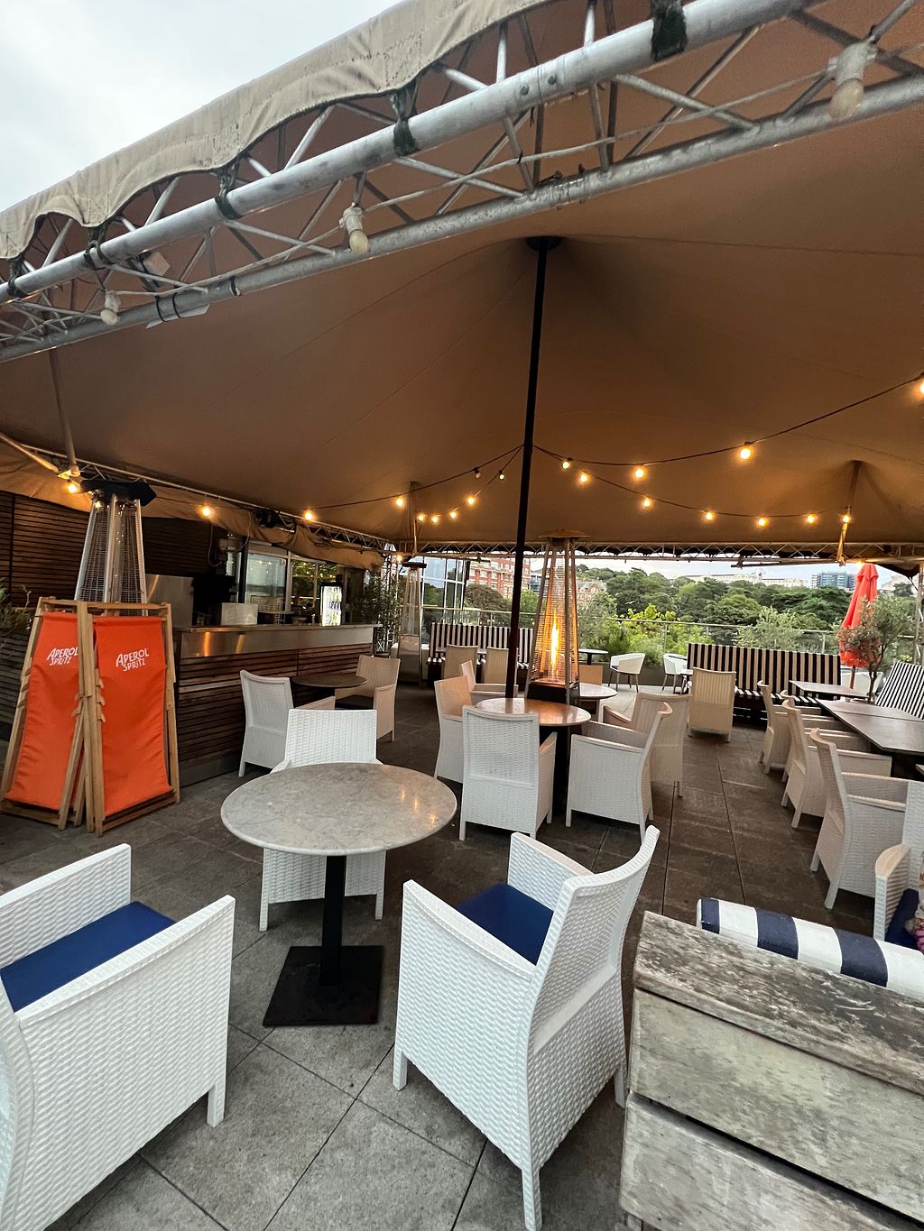 Dog friendly outside seating and has heating lamps