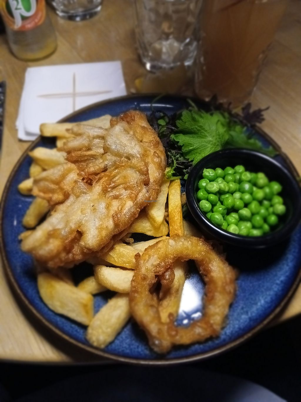 Had an evening meal. Asked for the vegan menu. Only 1 choice, but to be honest, it's best when there is just one and it's really good. Sourdough, olives and oil to start. Then fake fish, chips and peas. All completely perfect. There wasn't room unfortunately for the brownie dessert. Nice posh pub food with fabulous huge choice of real ales. Great photography on the walls. Staff were amazing!