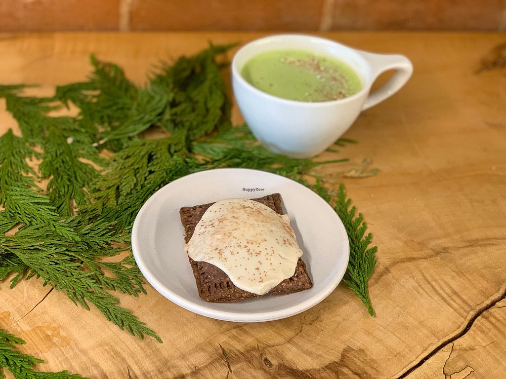 Vegan Hot Chocolate pop tart and Vegan Peppermint Matcha Latte