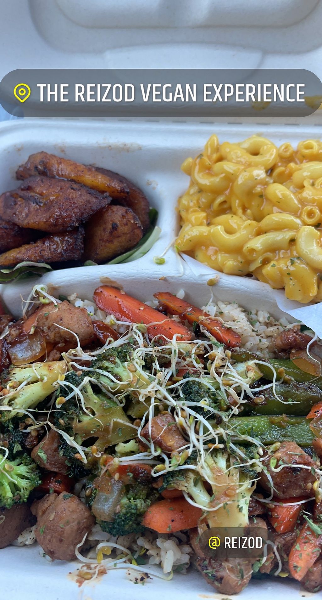 Vegan mac & cheese, collard greens and the philly cheese steak