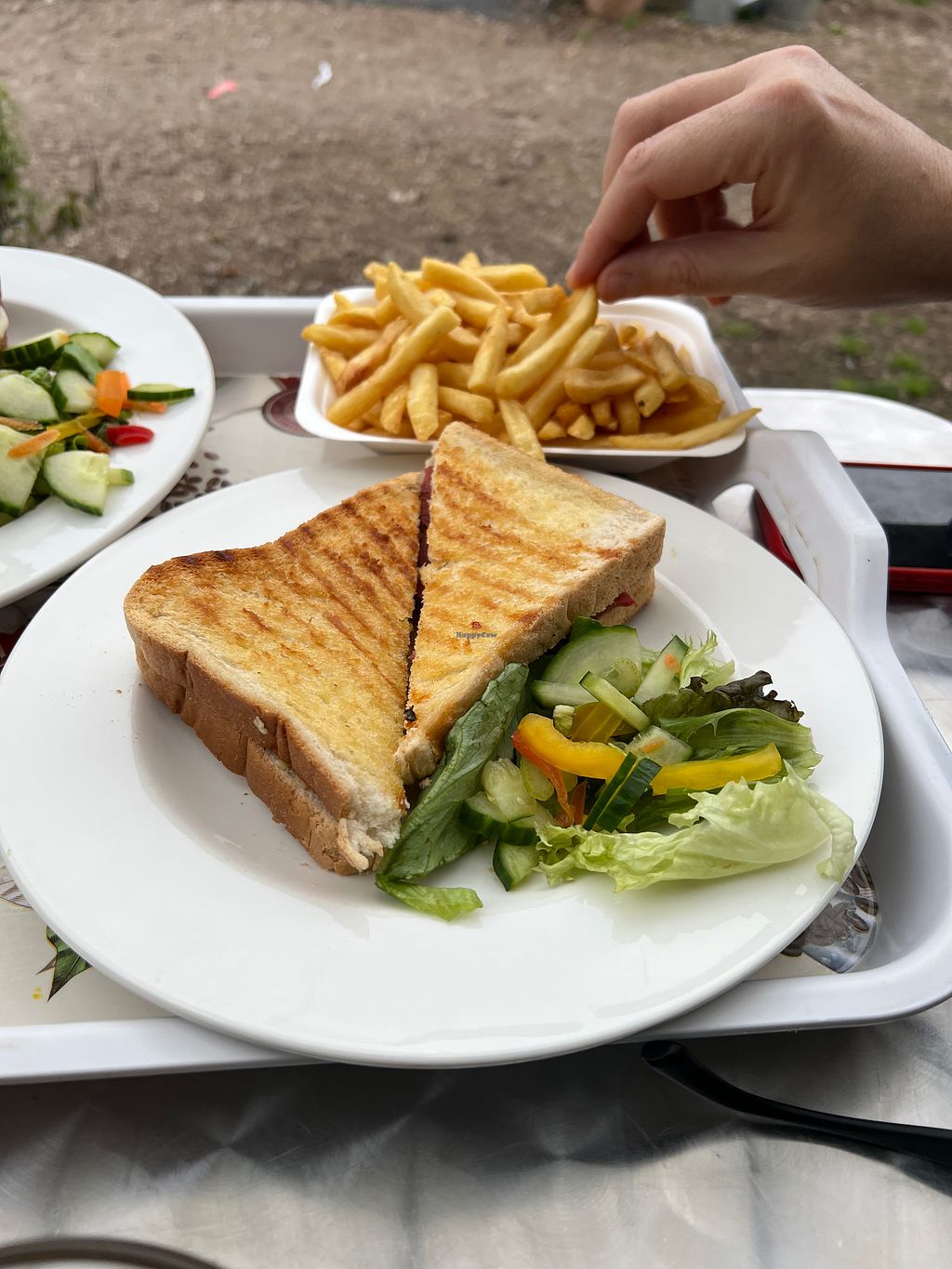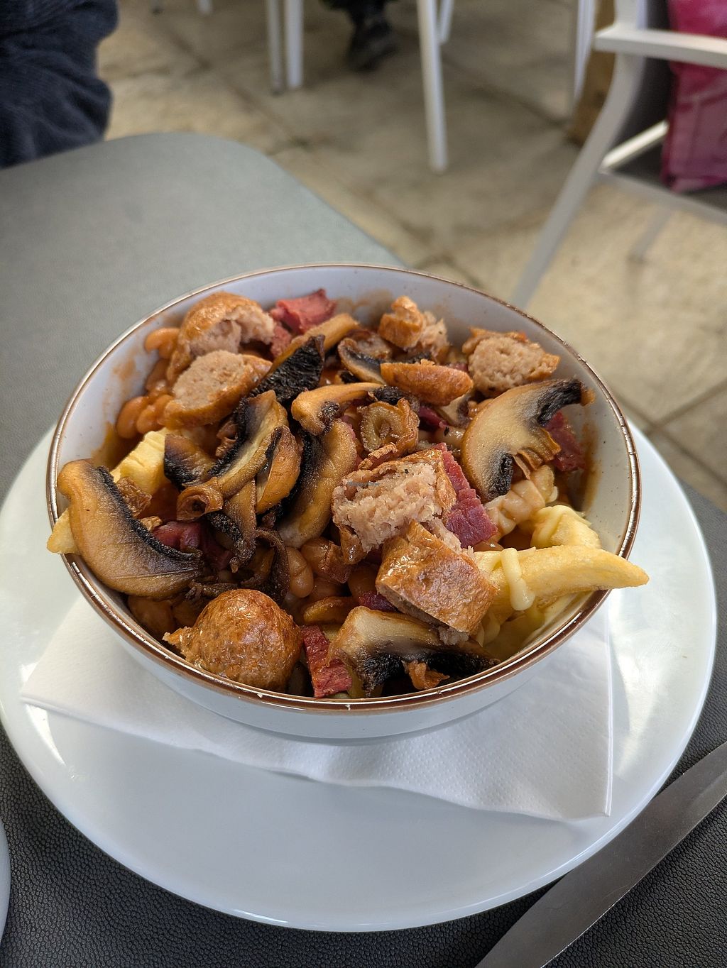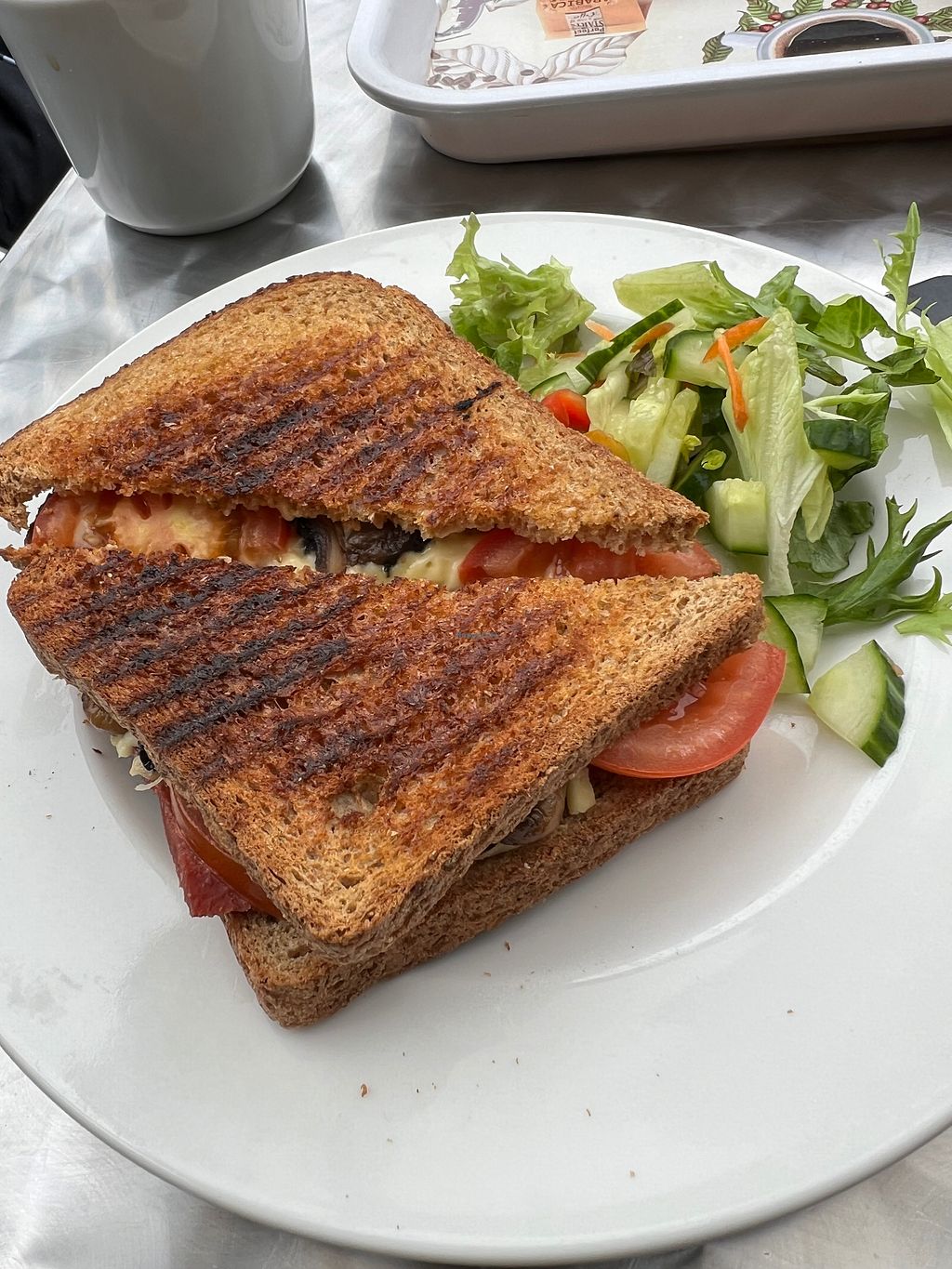 Rasher toastie with mushrooms, tomato and salad. Really yummy