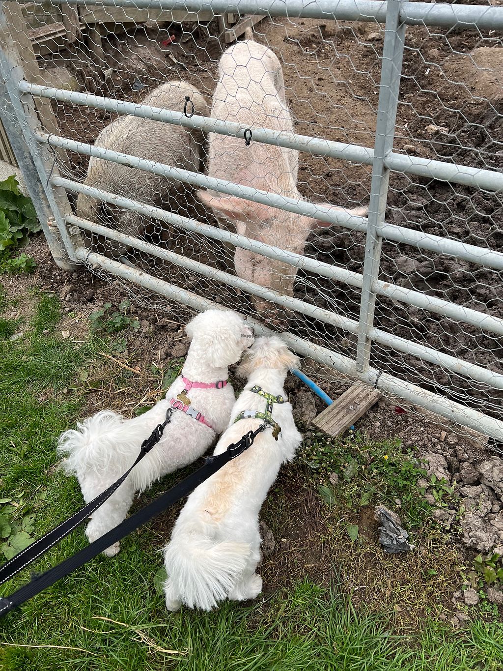 Frances and Frodo our rescue dogs meet the rescued pigs 💚