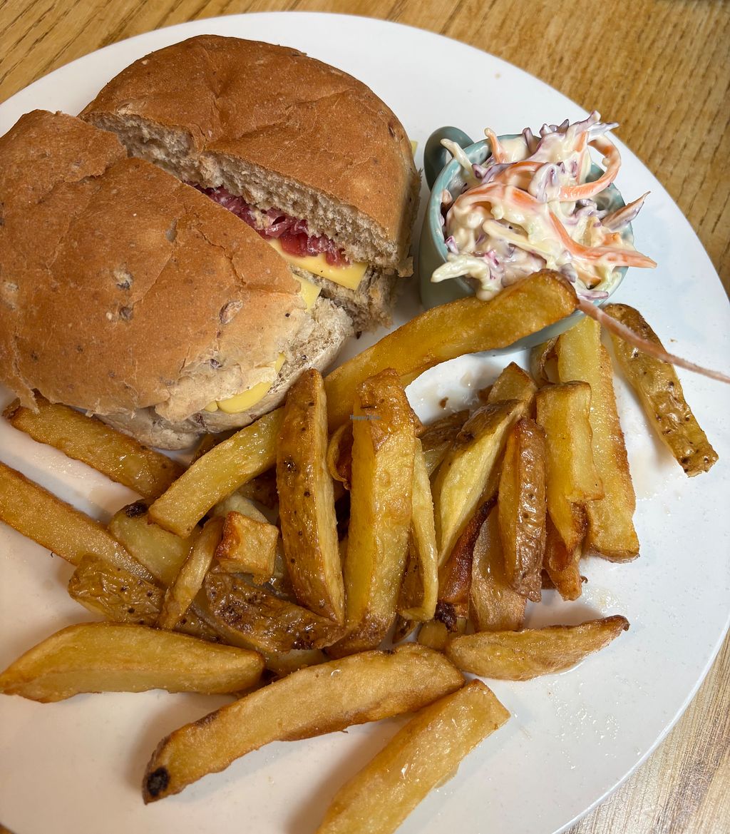 Good selection of vegan options - they do serve vegetarian and meat dishes - including delicious cakes and puddings. Ideal for breakfast, lunch and afternoon tea. Afternoon tea has to be booked in advance. Advisable to book a table as they get very busy. There are tables outside to use if the weather is ok. Unfortunately the noise level inside is very high - uncomfortably so at times.
