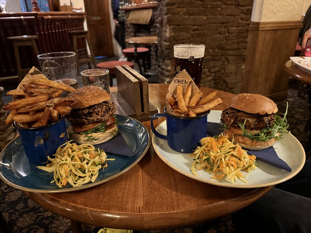 Serves meat, vegan options available. Village pub with an expanded vegan offering on request. Vegan options include vegetable curry, onion bhaji burger (spiced chickpea-onion fritter patty), and mushroom ciabatta. Open Tue-Sat 12:00-14:00, 18:00-21:00, Sun 12:00-18:00. Closed Mon.