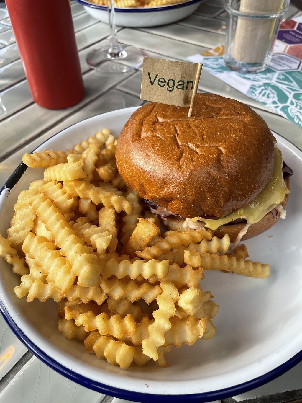 Courgey Pike burger, fries and slaw (takeaway)