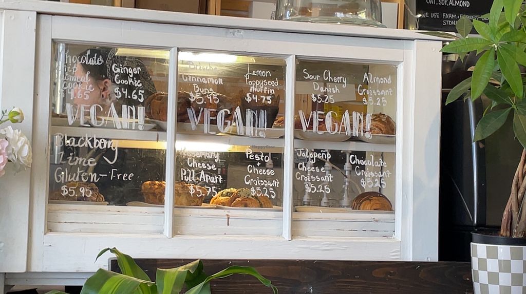 Everything on the menu is vegan by default, but they do serve non vegan cheese and eggs on request. Delicious pastries and brunch options. The ranchero wrap was so good.