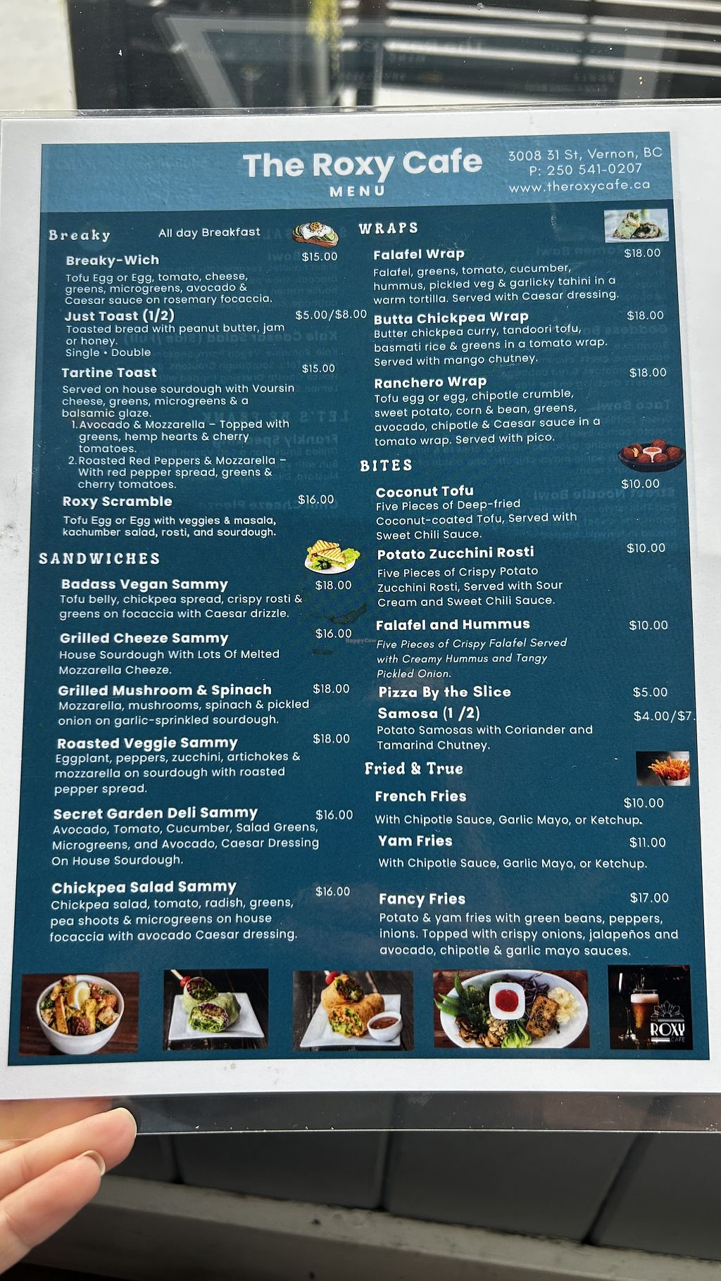 Holidaying in BC and dropped in to the Roxy . Had the breakfast burrito , which had “just egg “, sausage , tofu , black beans , spicy salsa and salad in it . It was so tasty and a really generous portion . Lovely decaf oat milk latte and a cinnamon bun . Son had a pizza slice which he said was heavenly . All vegan . Highly recommended