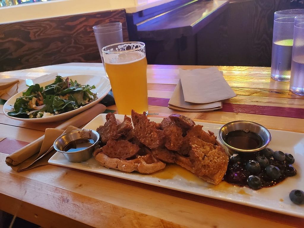 Serves meat, vegan options available. Pub and restaurant offering vegan spicy "chicken" sandwiches, burgers, zucchini spaghetti, and small plates. Also has a vegan wing night on Tue. Open Mon-Thu 4:00pm-10:00pm, Fri 4:00pm-12:00am, Sat-Sun 12:00pm-12:00am.