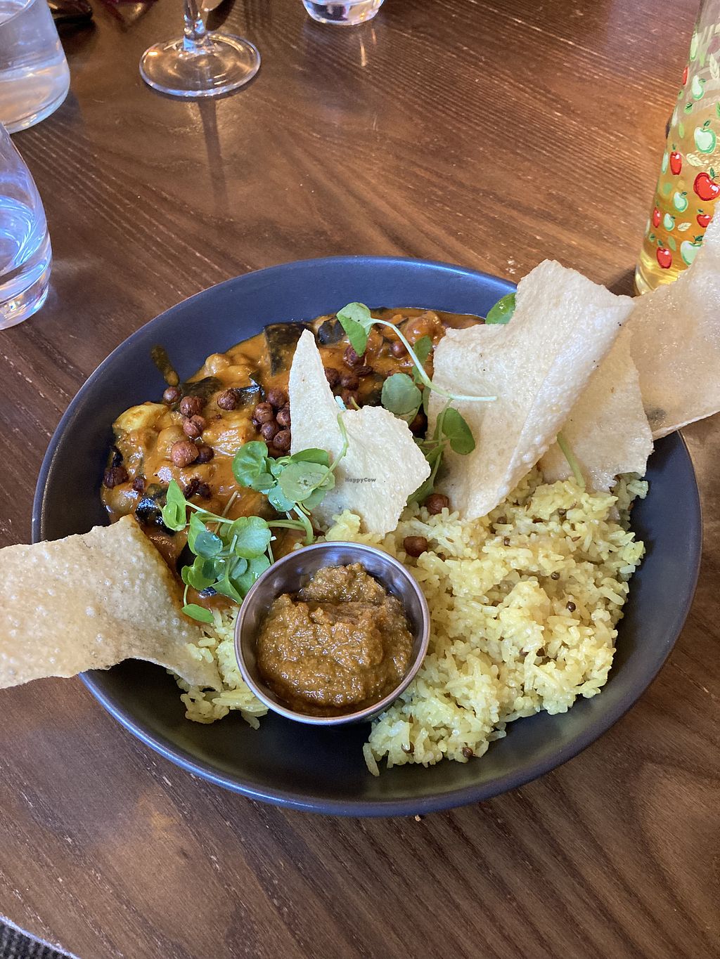 Quite a few vegan options on the menu at the moment - one brunch, one light bite, two mains, and one sandwich. Good to see the variety of choices. I had the "aubergine and chickpea curry", which had no aubergine. It was beautifully presented. More of a tomato stew than a curry. Nice enough but quite expensive for very safe/minimal flavour.