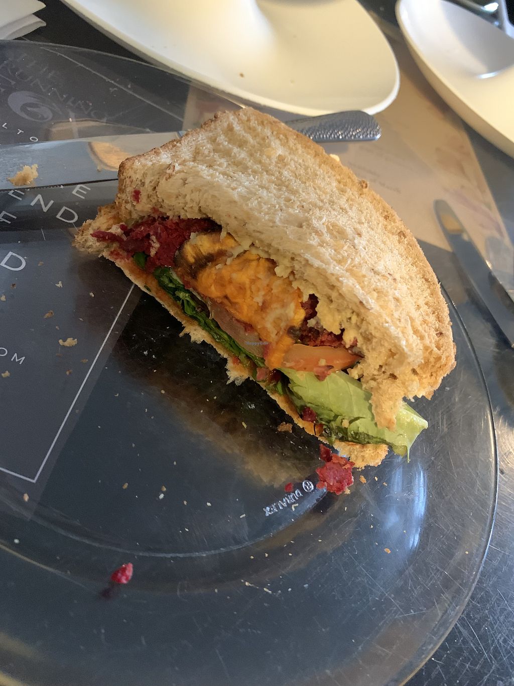 Stopped off for a coffee, Soya and oat available, also had the falafel, sweet potato, chilli jam doorstop melt, topped with vegan mozzarella. Filling and fresh