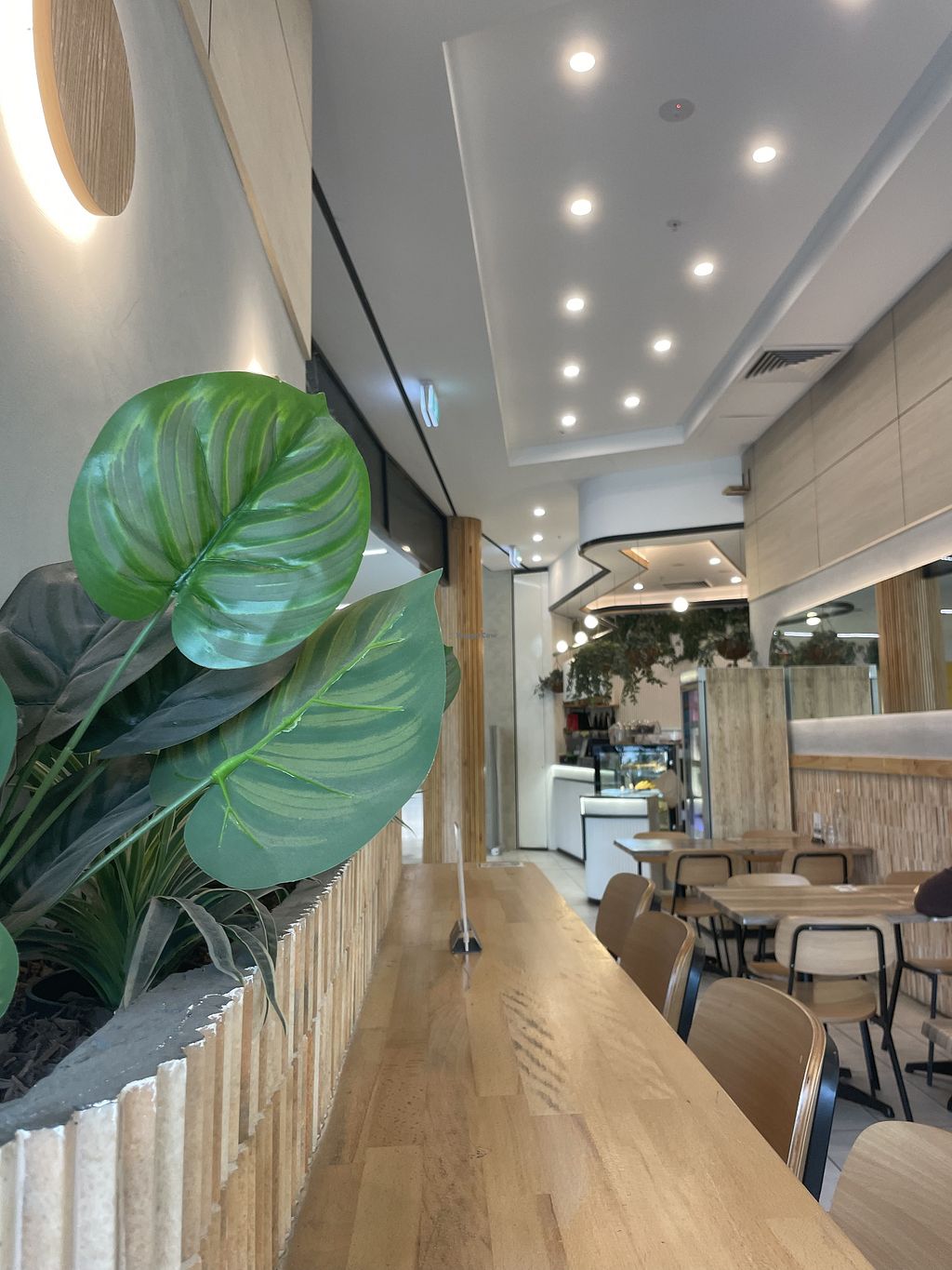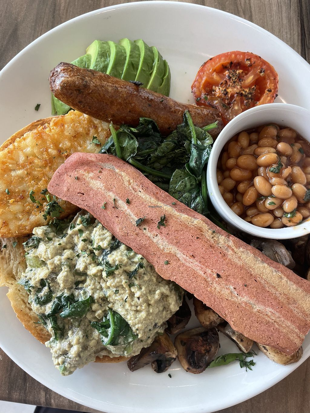 Burger, chip, vegan butter chicken and rice and vegan pizzas!