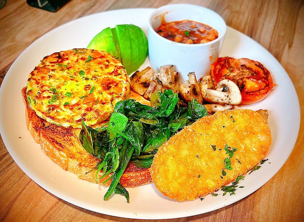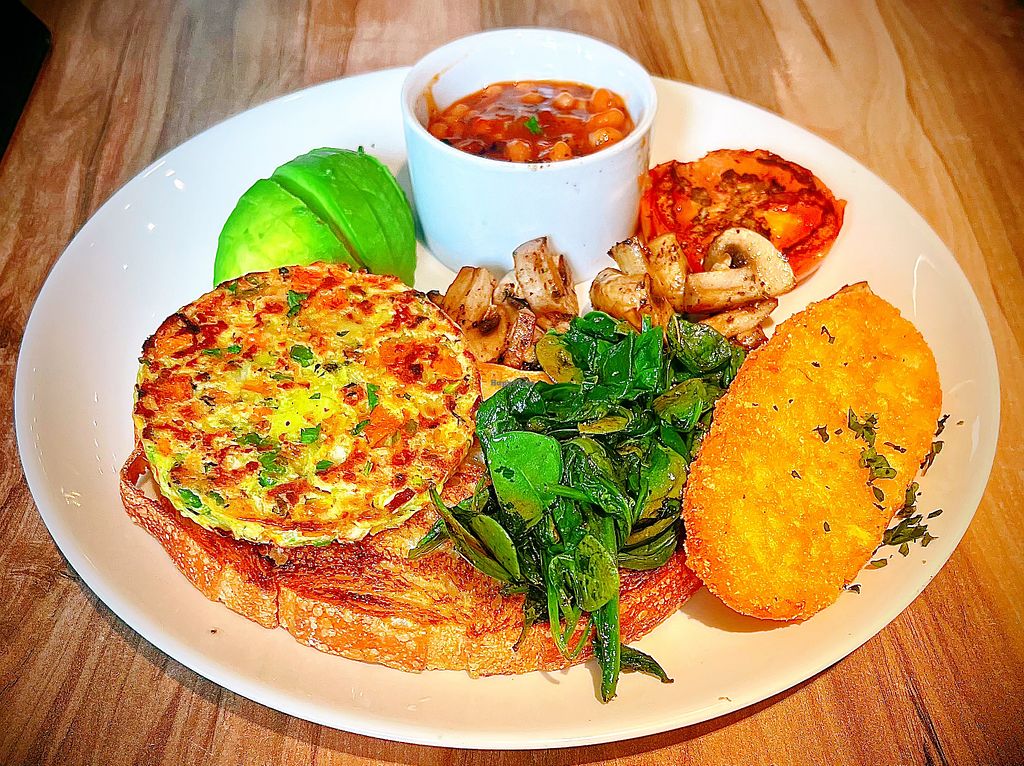 Big Breakfast - Avocado 🥑, Baked Beans, Wilted Spinach, Hash Brown, Gr…