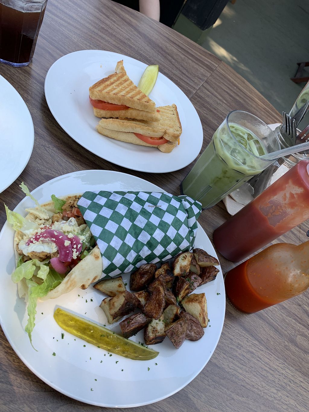 2 x gyro with hash browns, grilled cheese, iced americano, iced soy ma…