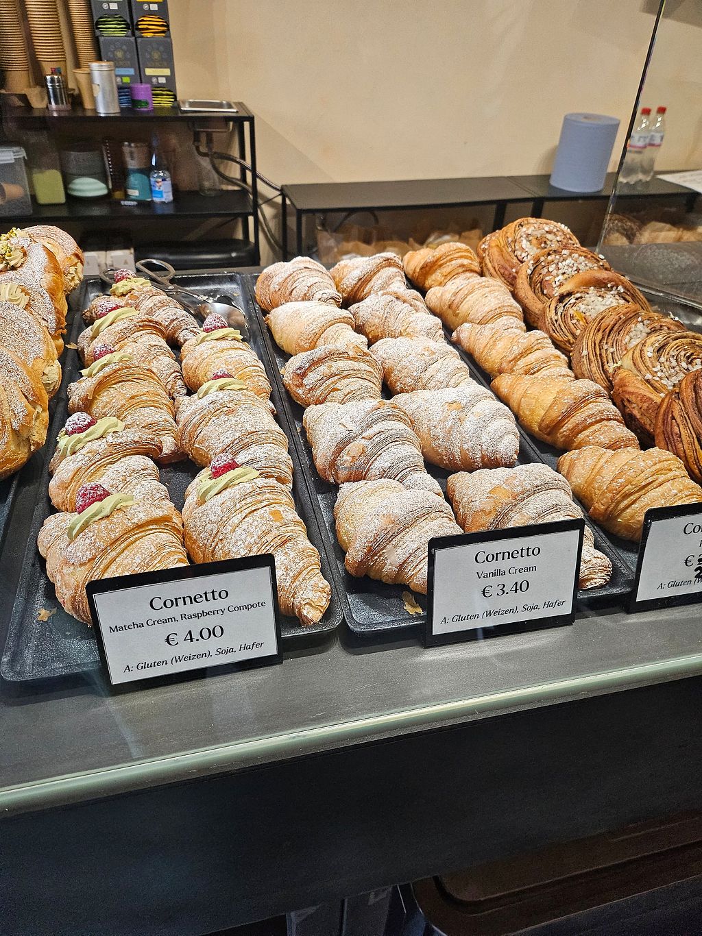matcha cornetto and pistaccio pastry