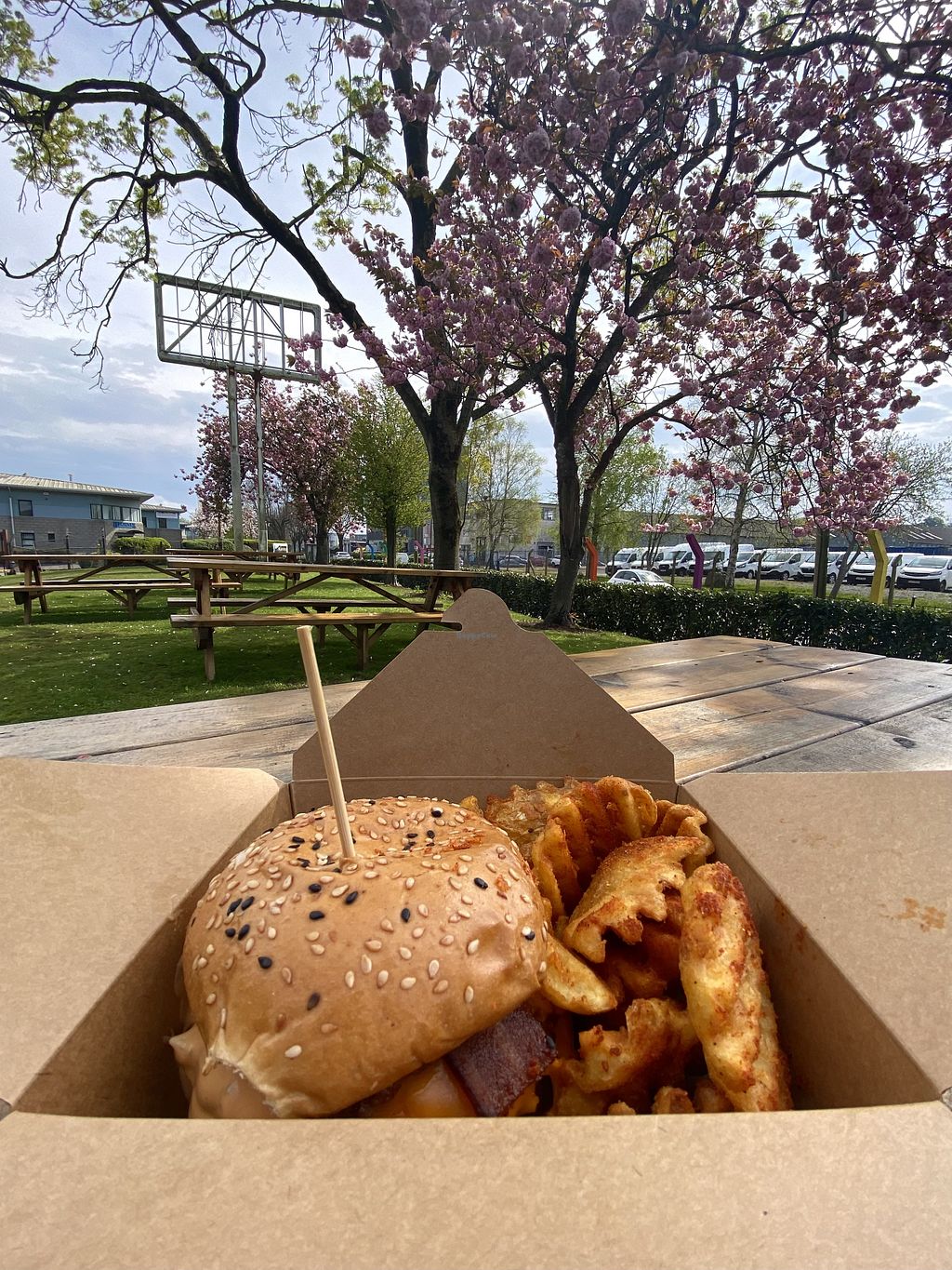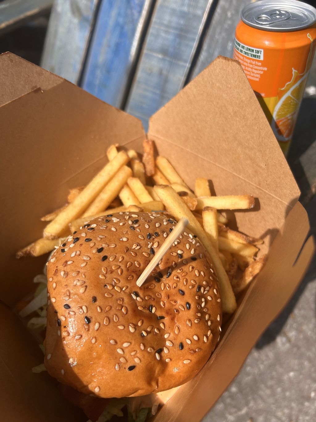 The location is very nice, directly situated at the docks in a large hall with many different food options. The burgers were divine and the garlic chips… 👌🏽