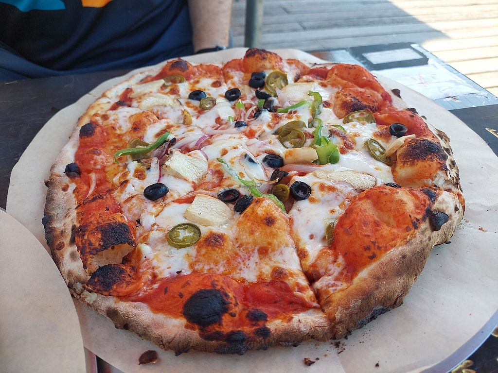 Lacto Ovo Pizza International Italian Beer/Wine Take-out Catering Non-veg Serves meat, vegan options available. Restaurant serving brick-oven pizzas and cocktails. Vegans can order pizza without cheese. Menu includes a "vegan club pizza." Open Mon-Sun 10:00am-10:00pm. More