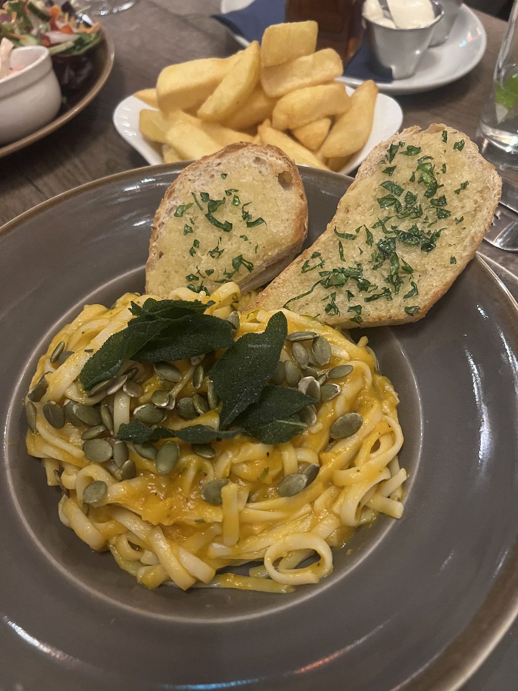 Mushroom & bean burger with salad, fries & salsa