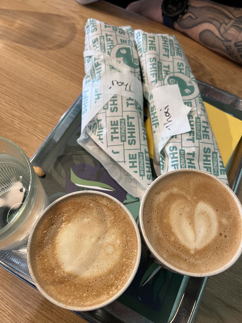 Read moreDe Dutch flatbread (broodje plantaardige kroket) was verrassend lekker. Fijne bite en smakelijke saus. De blueberry muffin kon smeuïger, maar het bananenbrood was dan weer top!
